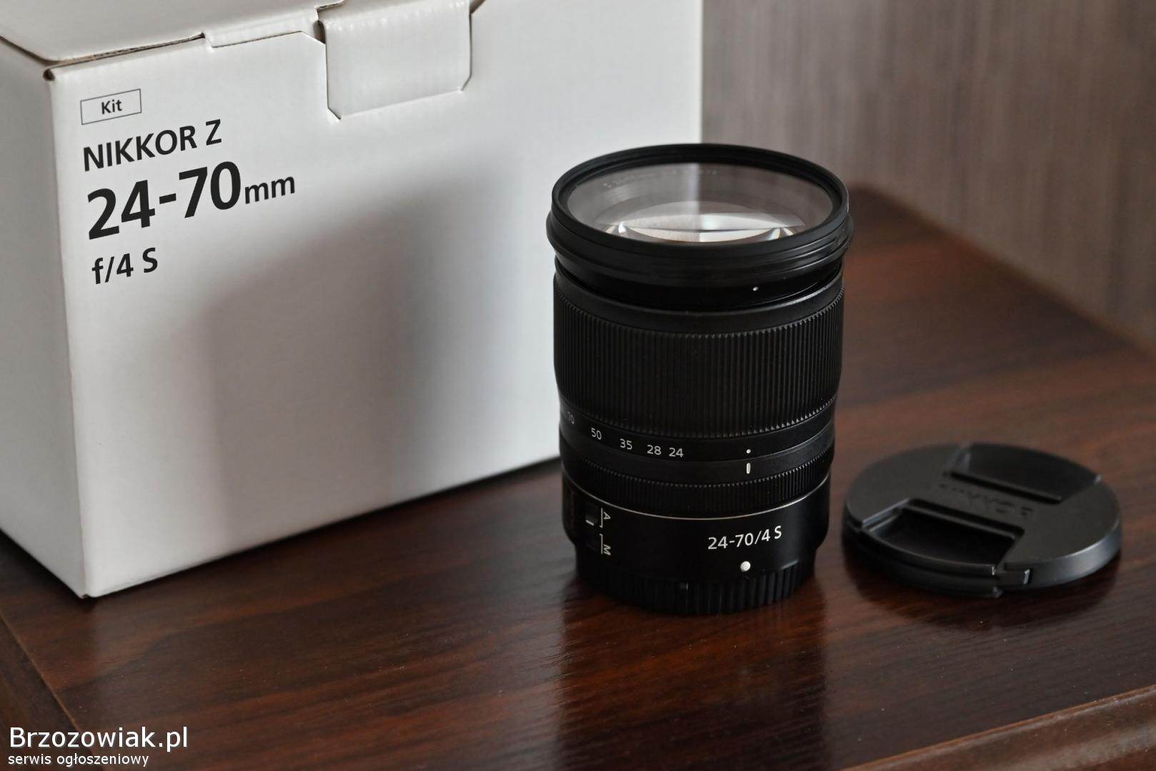 Obiektyw NIKKOR Z 24-70 f4s w idealnym stanie. Doskonała jakość obrazu, szeroki zakres ogniskowych i precyzyjna konstrukcja. U mnie amatorsko współpracował z Nikonem Z5 i była to współpraca bardzo udana :). Sprzedaję, ponieważ wskoczyłem na 24-120 f4s. Od początku założony był filtr UV. Sprzedaję komplet: obiektyw, 2 dekielki, osłona słoneczna, pudełko, filtr UV. Polecam barzo. Stan obiektywu oceniam na sklepowy.