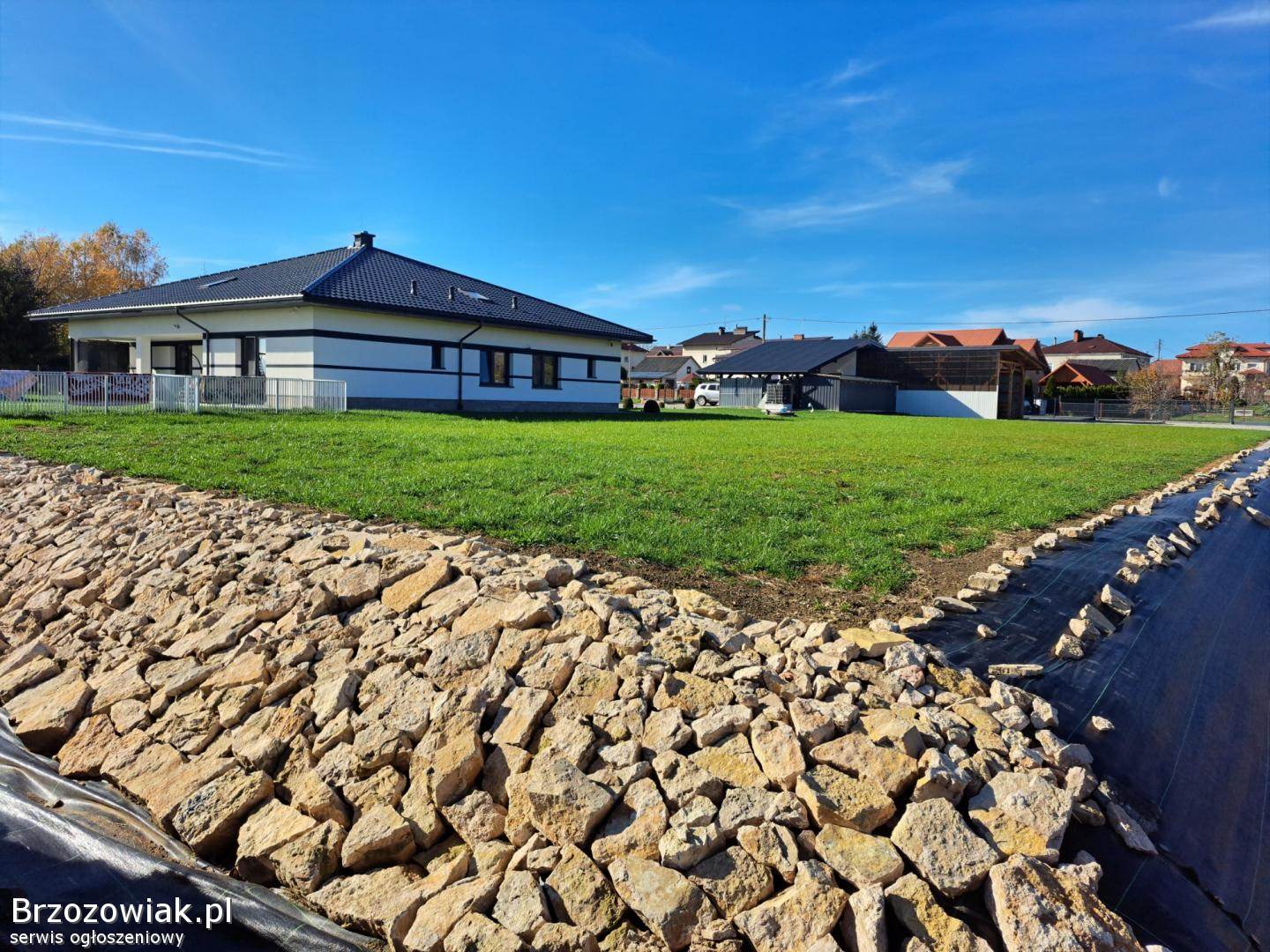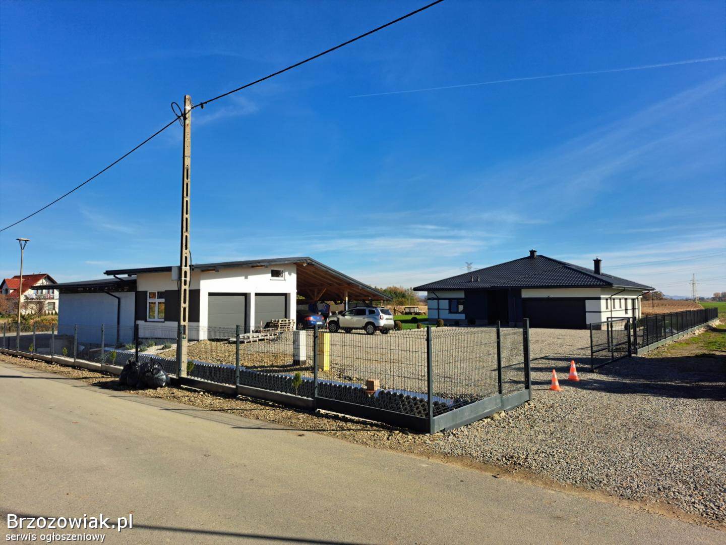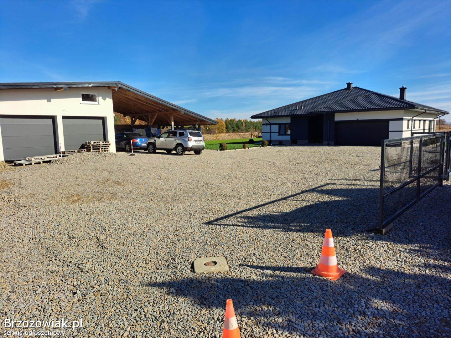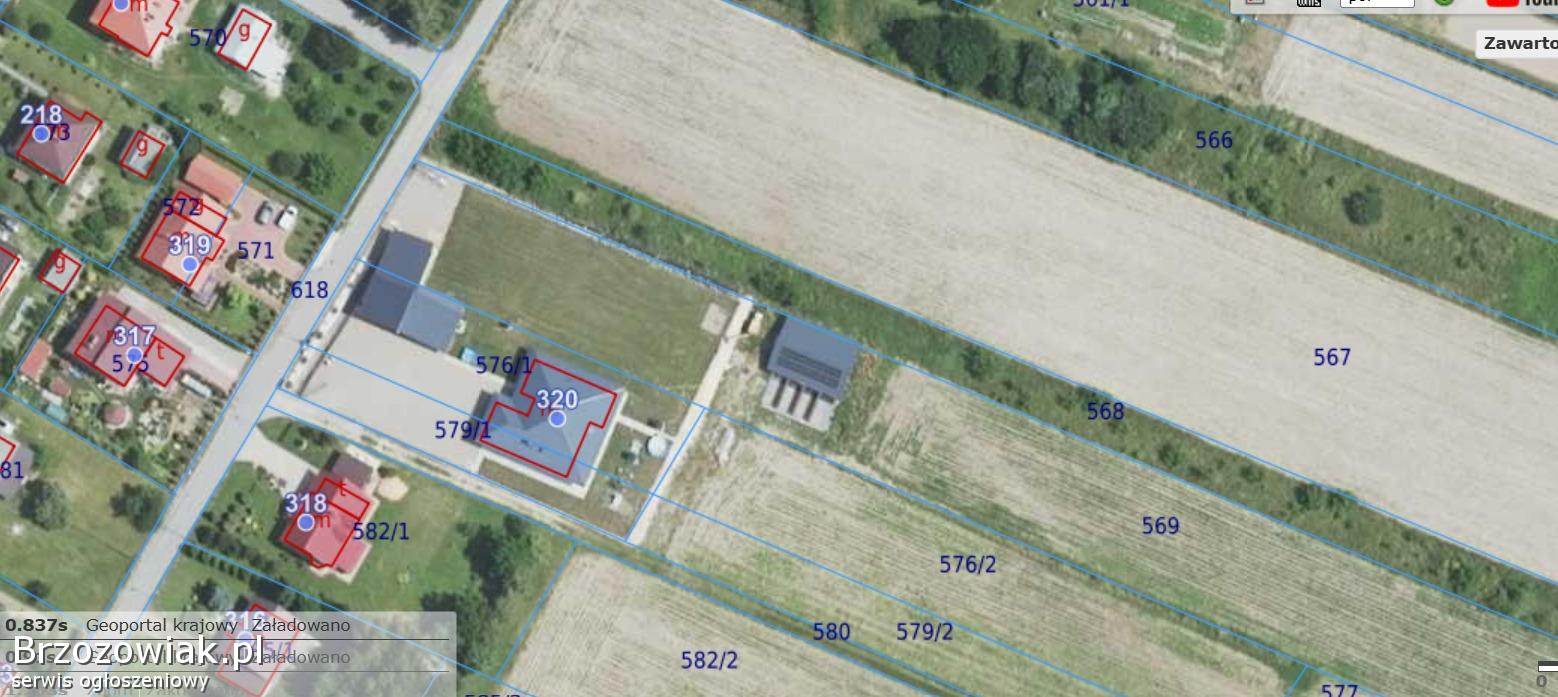 Na sprzedaż dom parterowy z garażem – możliwość adaptacji poddasza, budynek gospodarczy, spokojna okolica, działka 20 arów (576/1, 579/1), możliwość dokupienia kolejnych działek.