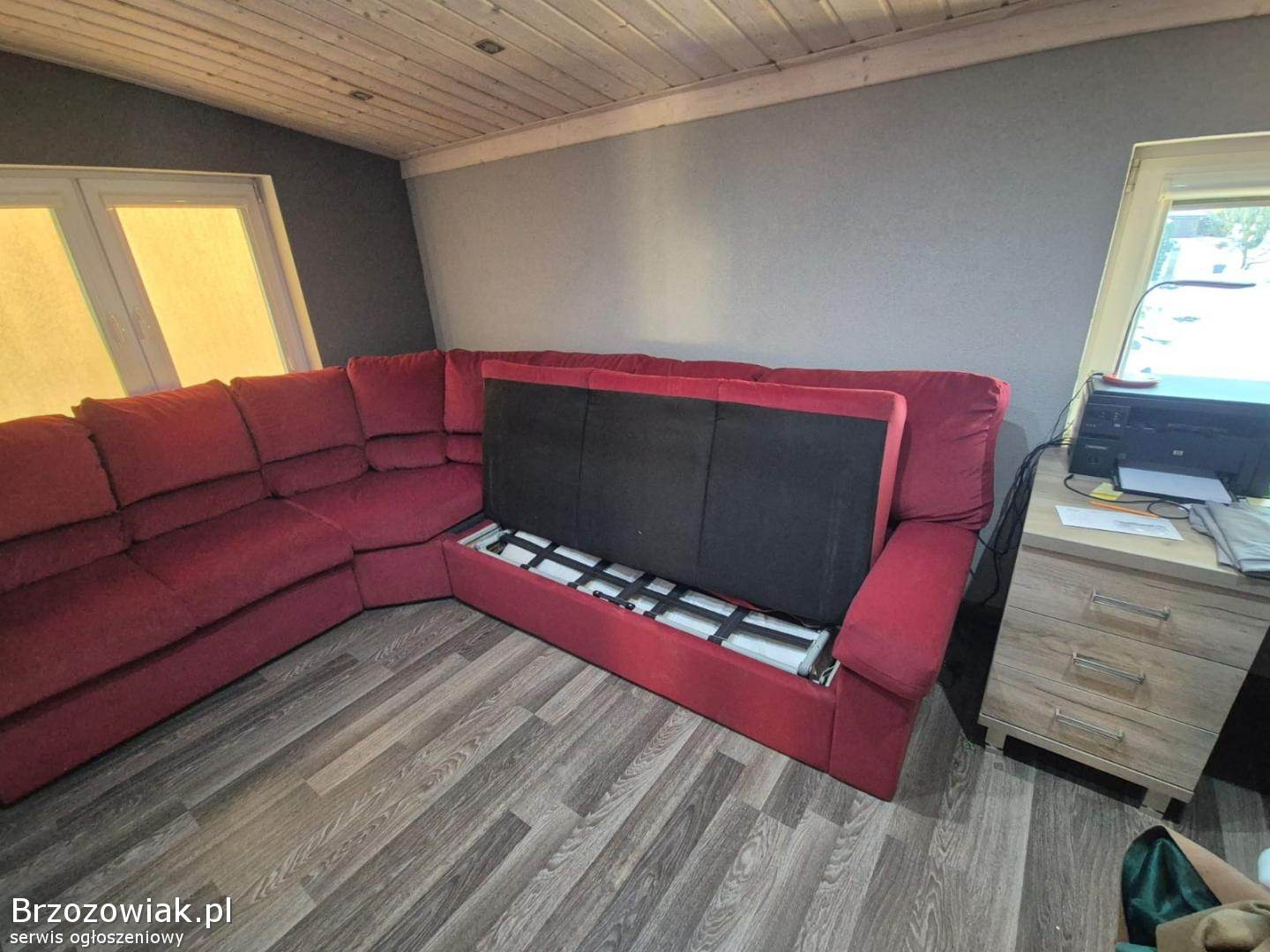 Naroznik z funkcją spania, wymiary naroznika 3100×2700 Mało używany, tkanina obiciowa - carabu, Jest to material zmywalny, który jest imitacją skóry naturalnej.