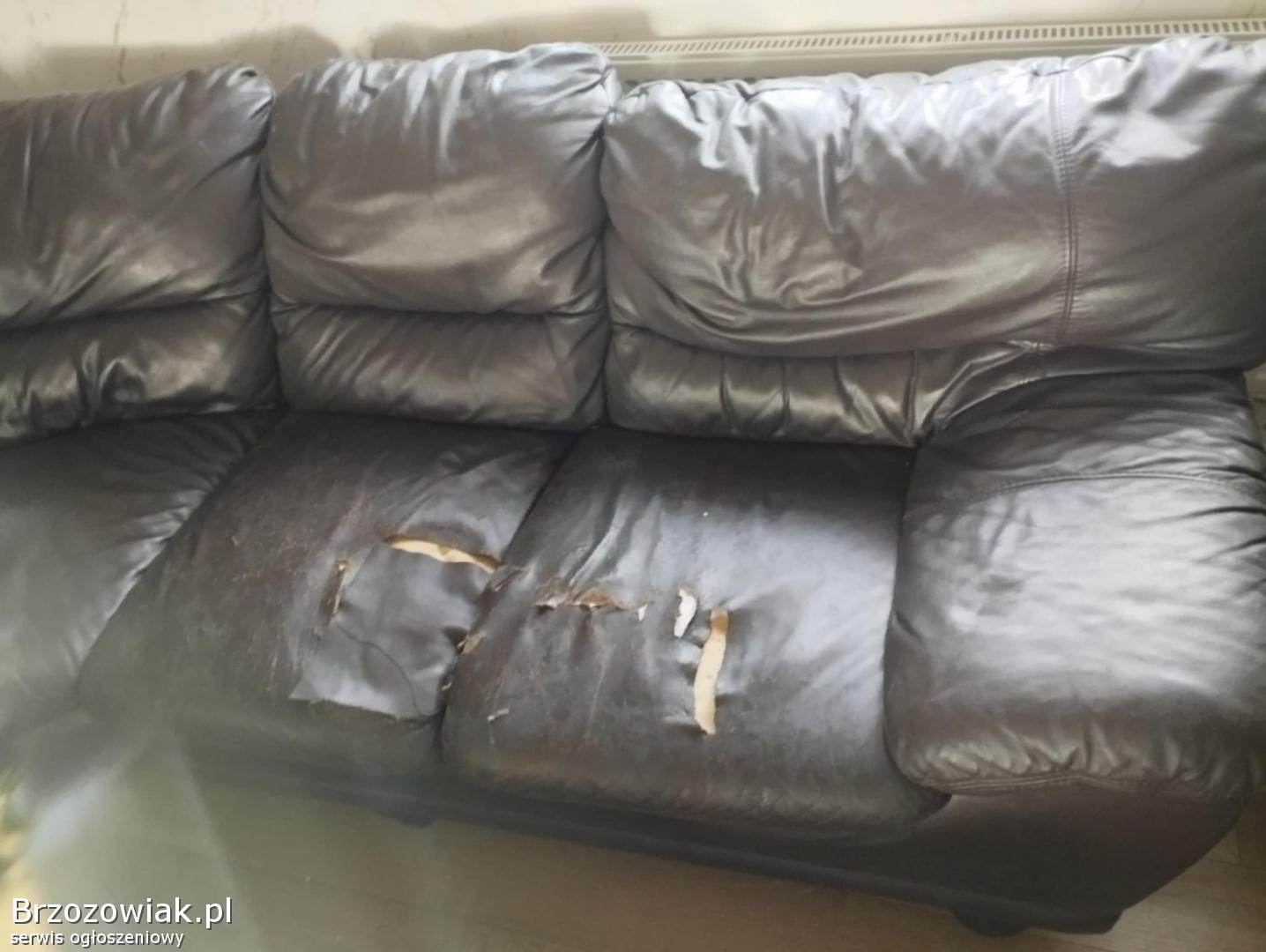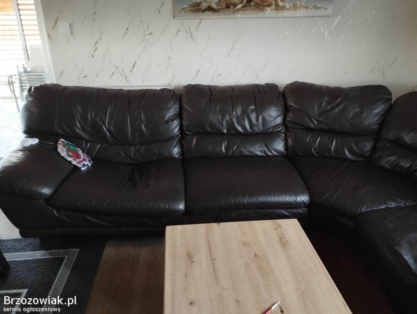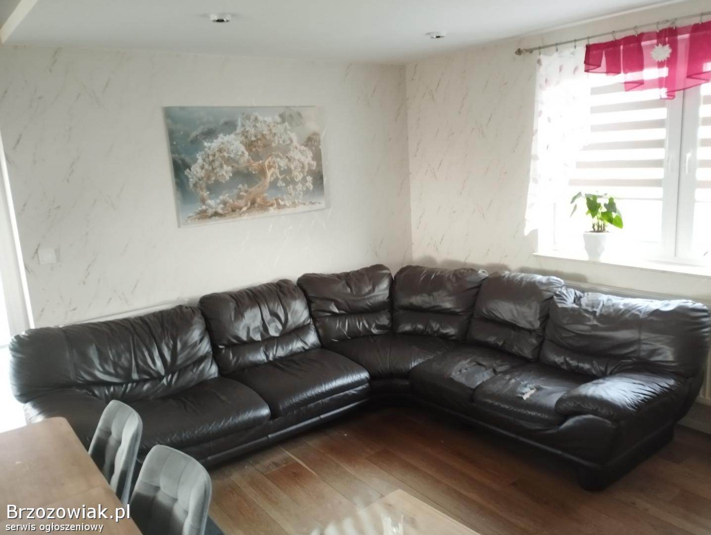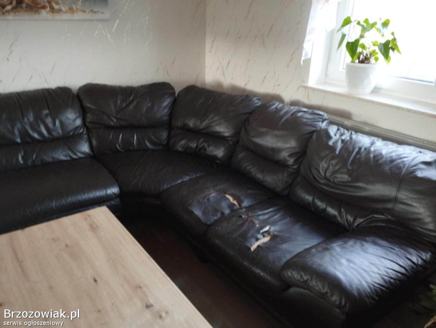 Do sprzedania skórzany narożnik w kolorze ciemnobrązowym o wymiarach 3, 5x3, 0m. Dwa siedziska są poniszczone co widać na zdjęciach, dodatkowo wycięty jest kawałek materiału z środkowej części z tyłu od niewidocznej strony. Poza tym narożnik w dobrym stanie. Odbiór i transport we własnym zakresie.