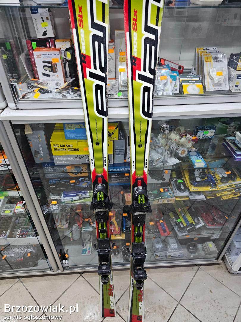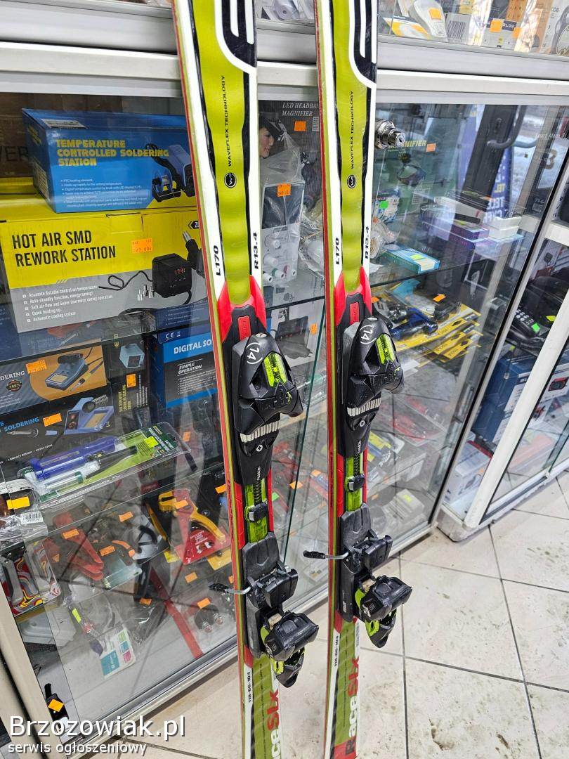 Sprzedam narty zjazdowe Elan slx carwingowe promien skrętu 13m stan ślizgów dobry, wiązania dobre z góry trochę porysowane