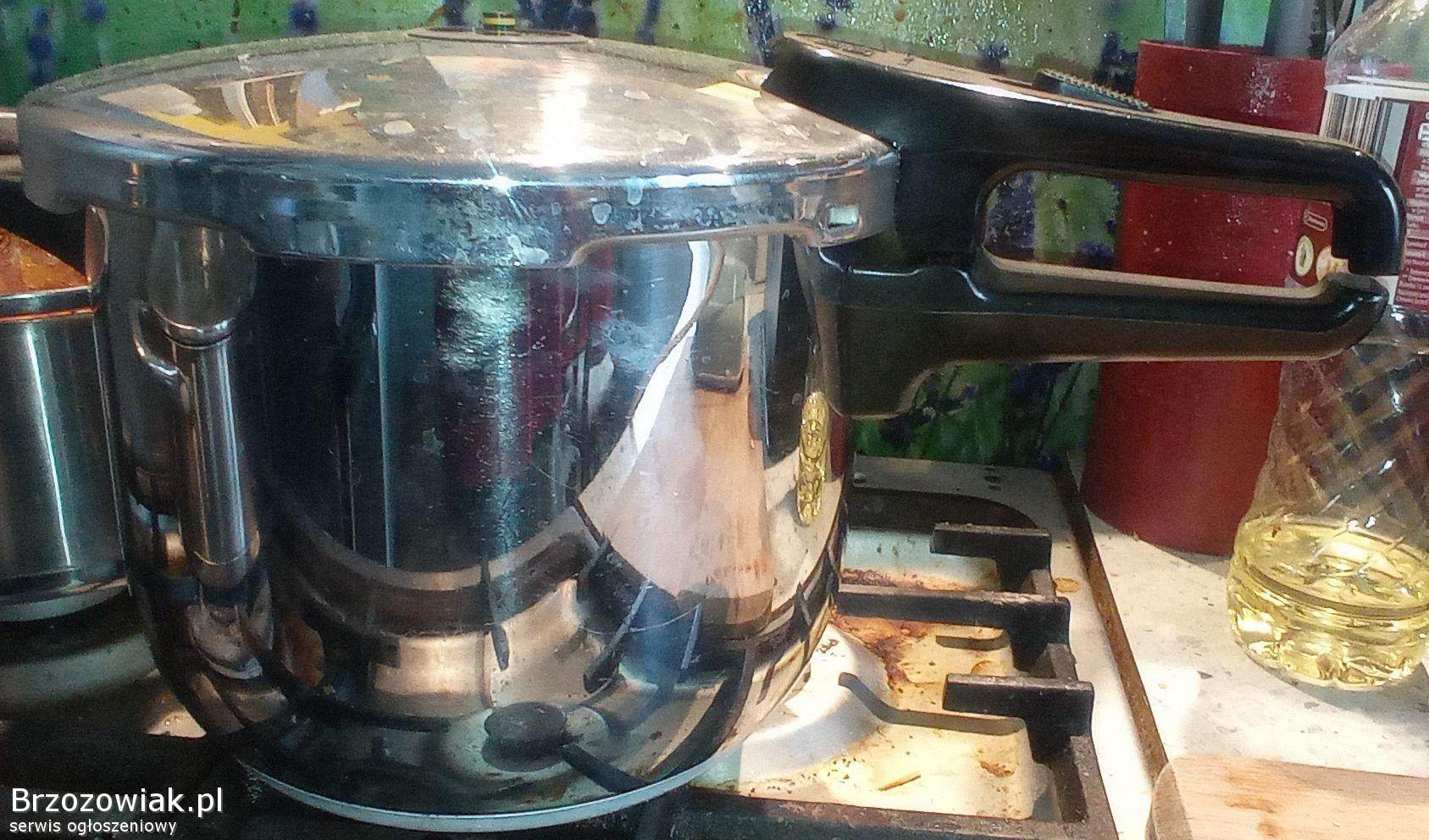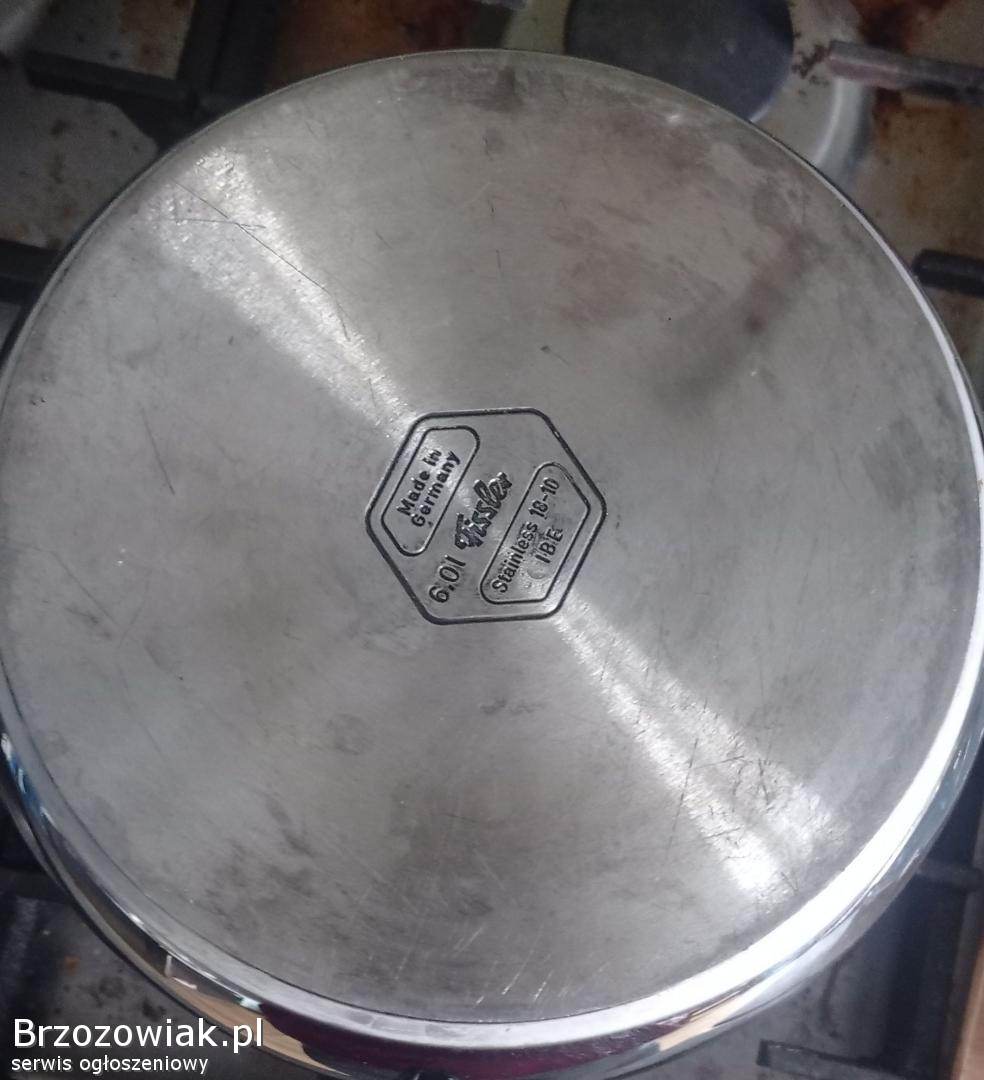 Używany niemiecki szybkowar Fissler 6 litrów na litowe. Solidna konstrukcja ze stali nierdzewnej zapewnia długotrwałe użytkowanie. Szybkowar pozwala na szybkie i energooszczędne przygotowanie posiłków.