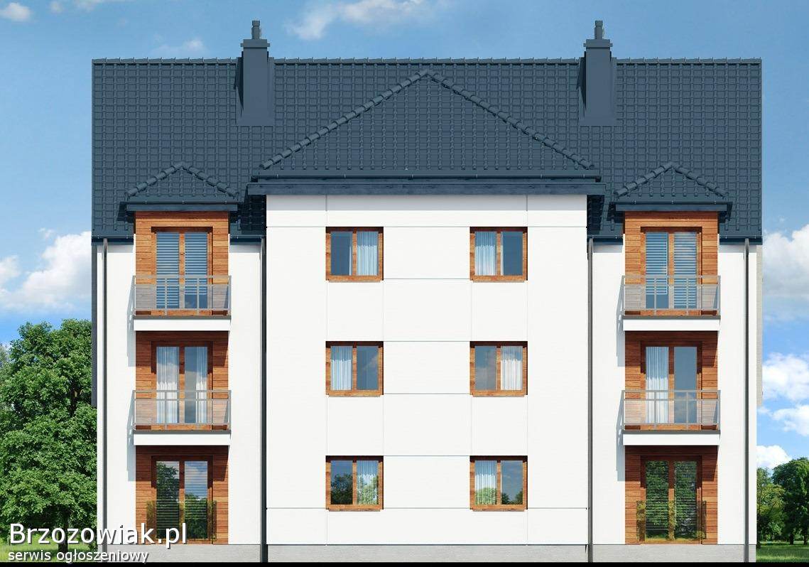 Apartamentowiec posadowiony na 23 arowej działce, posiada 11 mieszkań o pow. 38, 53 m2 i 41, 44 m2. Część mieszkań jest już sprzedana. Pozostały mieszkania na parterze nr 3 oraz na 2 piętrze nr 8, 9, 10, 11.