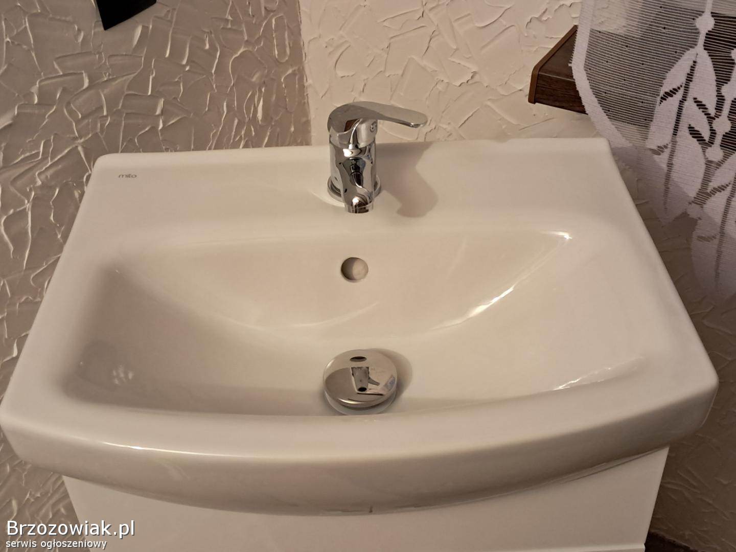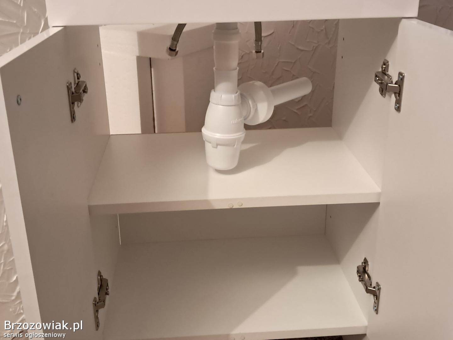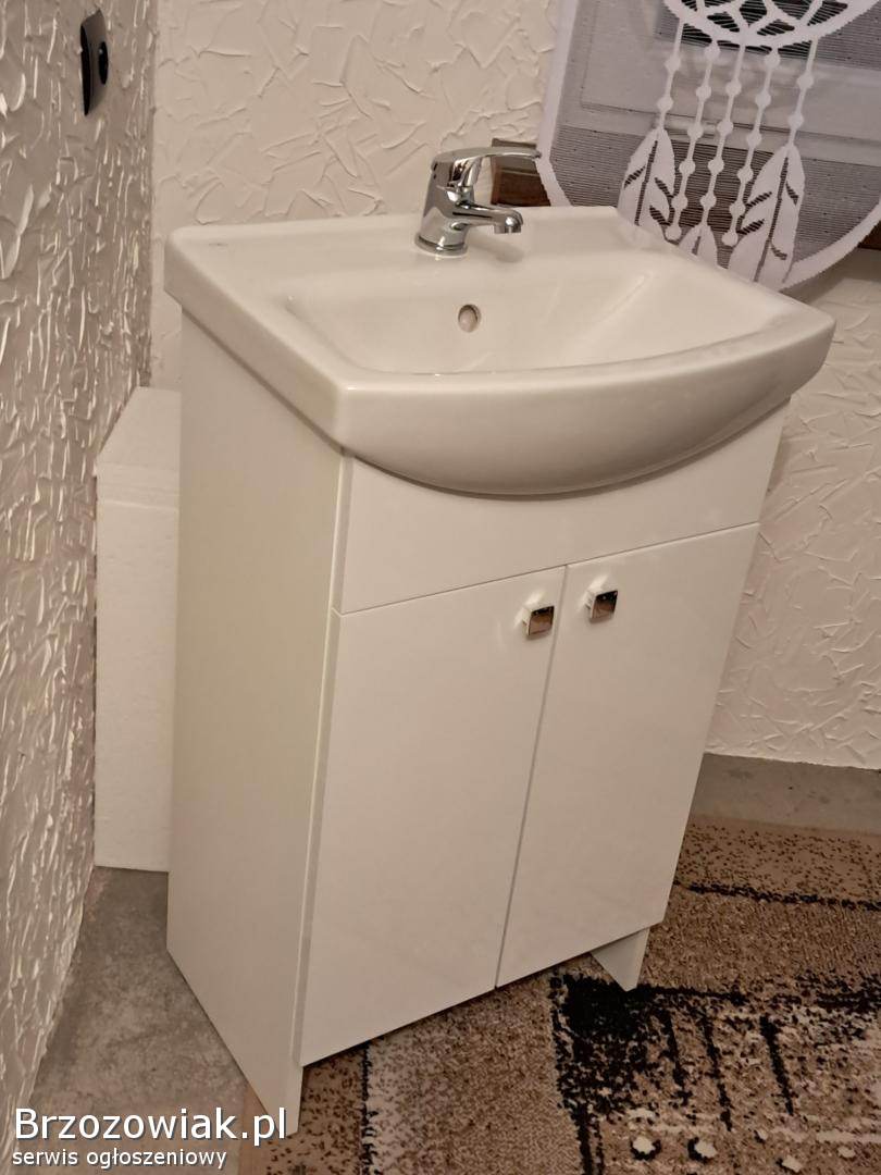 Nowa szafka łazienkowa z umywalką i baterią
