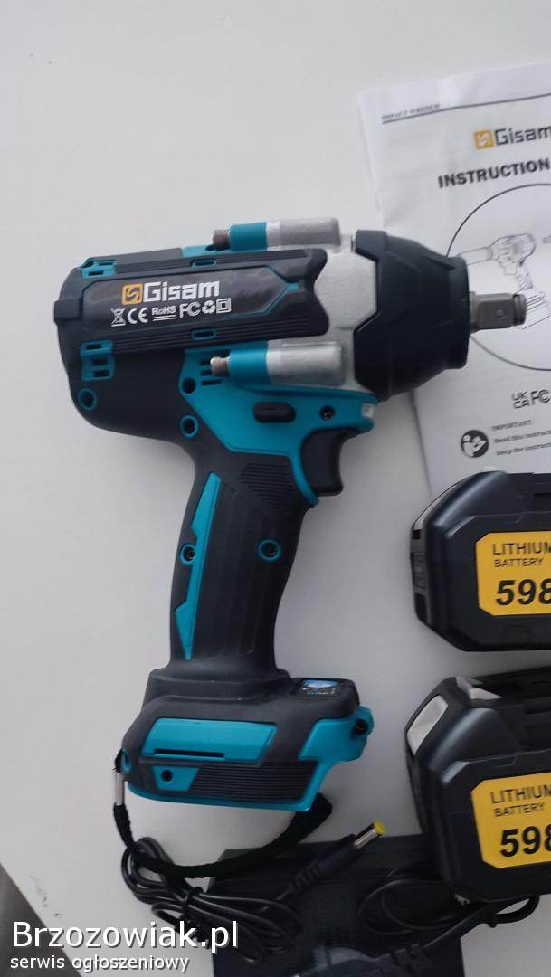 Sprzedam nowy komplet klucz pneumatyczny akumulatorowy Gisam 1800N. M+2 baterie+ładowarka