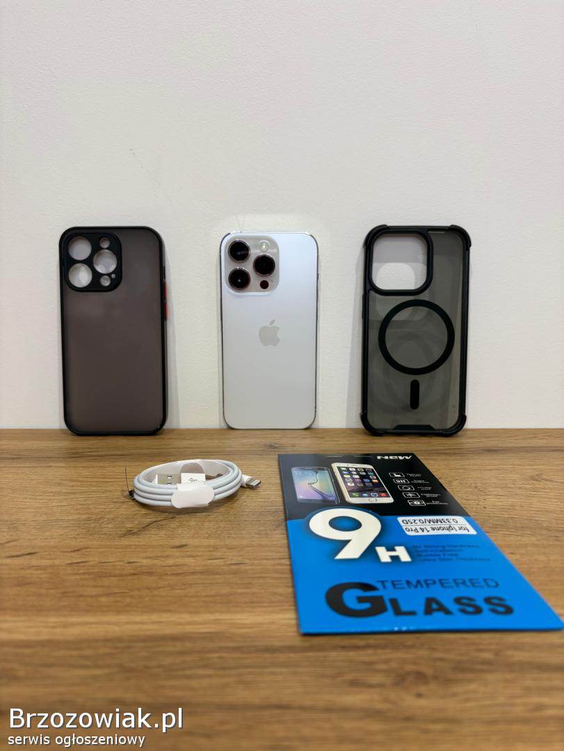 Do zaoferowania mam telefon Iphone 14 Pro o pojemności 128GB w kolorze srebrnym/białym.