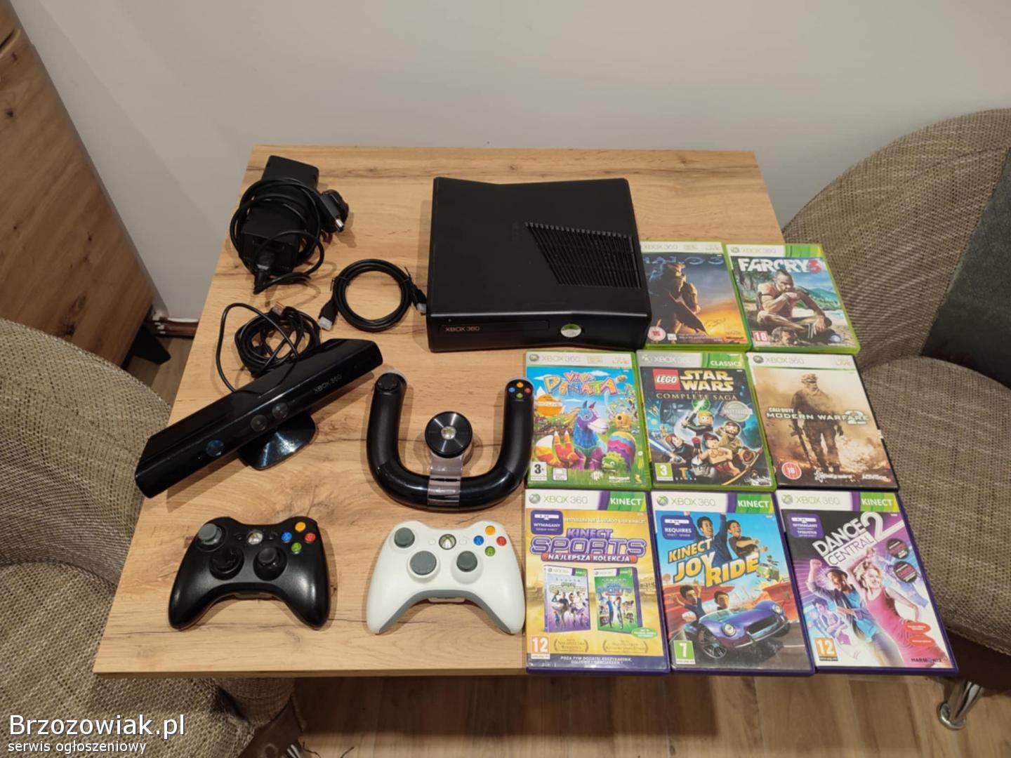 Mam na sprzedaż konsolę Xbox 360 slim 250gb. W skład zestawu wchodzi: - konsola Xbox 360; - 2 pady; - kierownica; - kinect; - gry widoczne na zdjęciu;