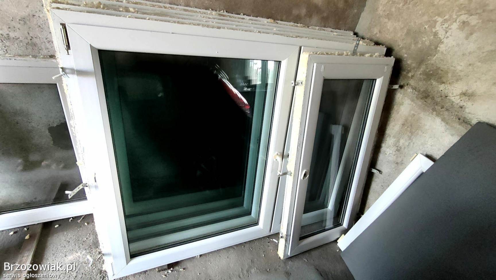 Sprzedam używane okna z demontażu, plastikowe (PCV) w kolorze białym, 2‑szybowe.