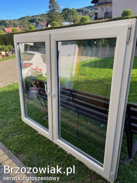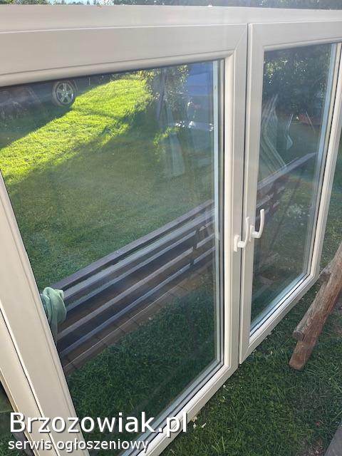 Dwuskrzydłowe, otwierano/uchylne, szyba podwójna zespolona bezbarwna, profil 70mm, Stan bardzo dobry.