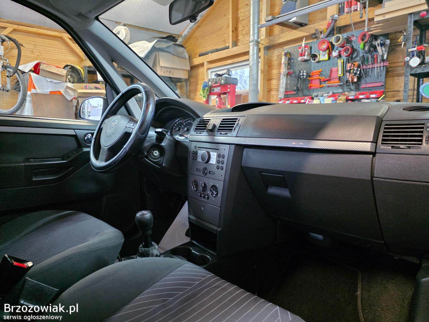 Meriva jest bardzo dobrze wyposażona tj. klimatyzacja, centralny zamek z pilota, wspomaganie kierownicy, elektryczne szyby, elektryczne lusterka, poduszki powietrzne, oryginalne radio z CD, wielofunkcyjna kierownica, ABS, ESP, isofix, mnóstwo schowków, światła przeciwmgielne, 2 kluczyki, komplet opon letnich i zimowych itd.
