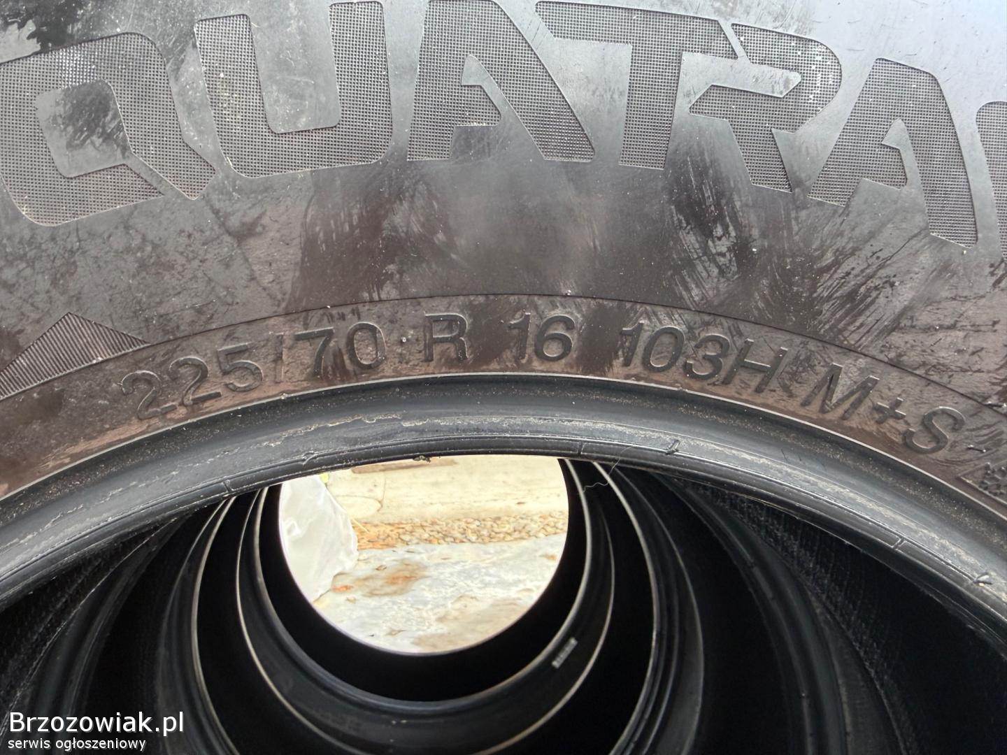Do sprzedania posiadam komplet opon całorocznych Vredestein Quatrac w rozmiarze 225/70 R16 103H z homologacją zimową 3PMSF M+S. Stan opon bardzo dobry, przyjechały na samochodzie zza granicy, nie jeżdżone w Polsce. Wysokość bieżnika 5/6 mm, produkcja 17 tydzień 2021 roku.