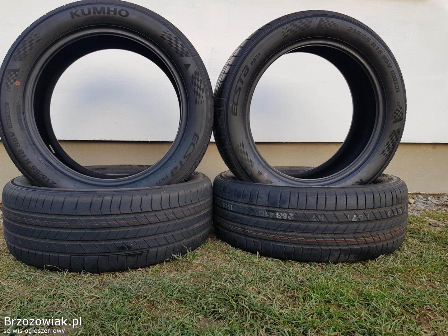 Sprzedam opony letnie 18 cali zdemontowane z nowego samochodu Kumho Ecsta PS71 215/55 R18 95 V. Przebieg około 100 km. Rok produkcji 2025.