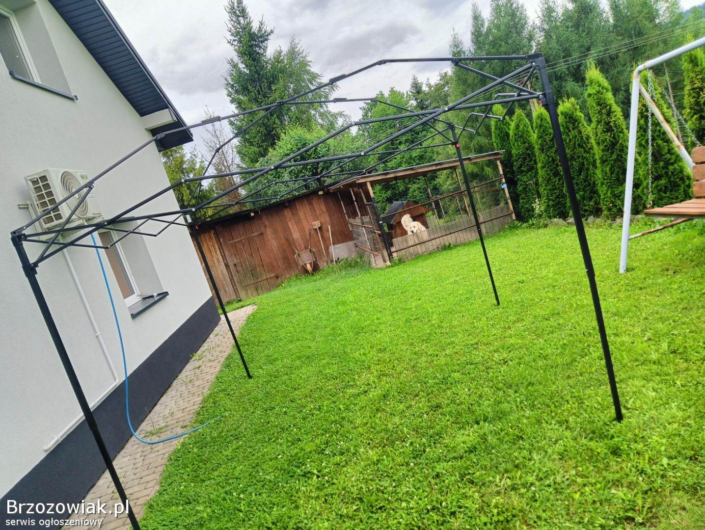 Mam na sprzedaż kompletny parawan ogrodowy, nie używany z racji, że był zakupiony na prezent, a rodzice kupili sobie ten, który jest pokazany na ostatnim zdjęciu wizualizacyjnym. Parawan bardzo łatwo się rozkłada/składa, idealny do ogrodu i na wyjazd. Jego wymiary: