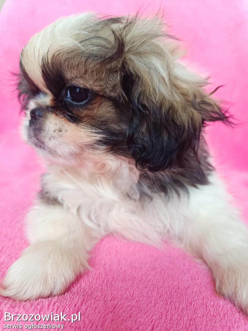 Szczeniak pekińczyk urodzony 20 lipca. Zaszczepione zgodnie z wiekiem posiada książeczkę zdrowia odrobaczenie. Rodowód oraz chip. Wychowywane z dziećmi. Proszę o rozsądne decyzję. Odbiór tylko i wyłącznie osobisty.