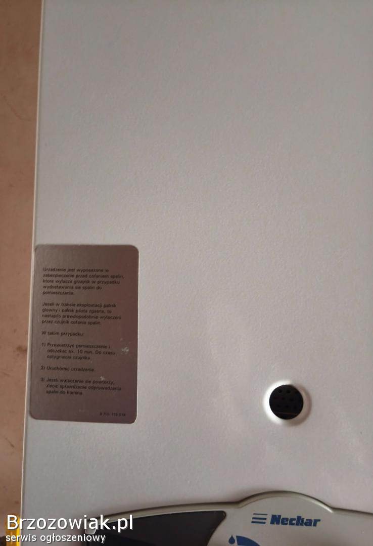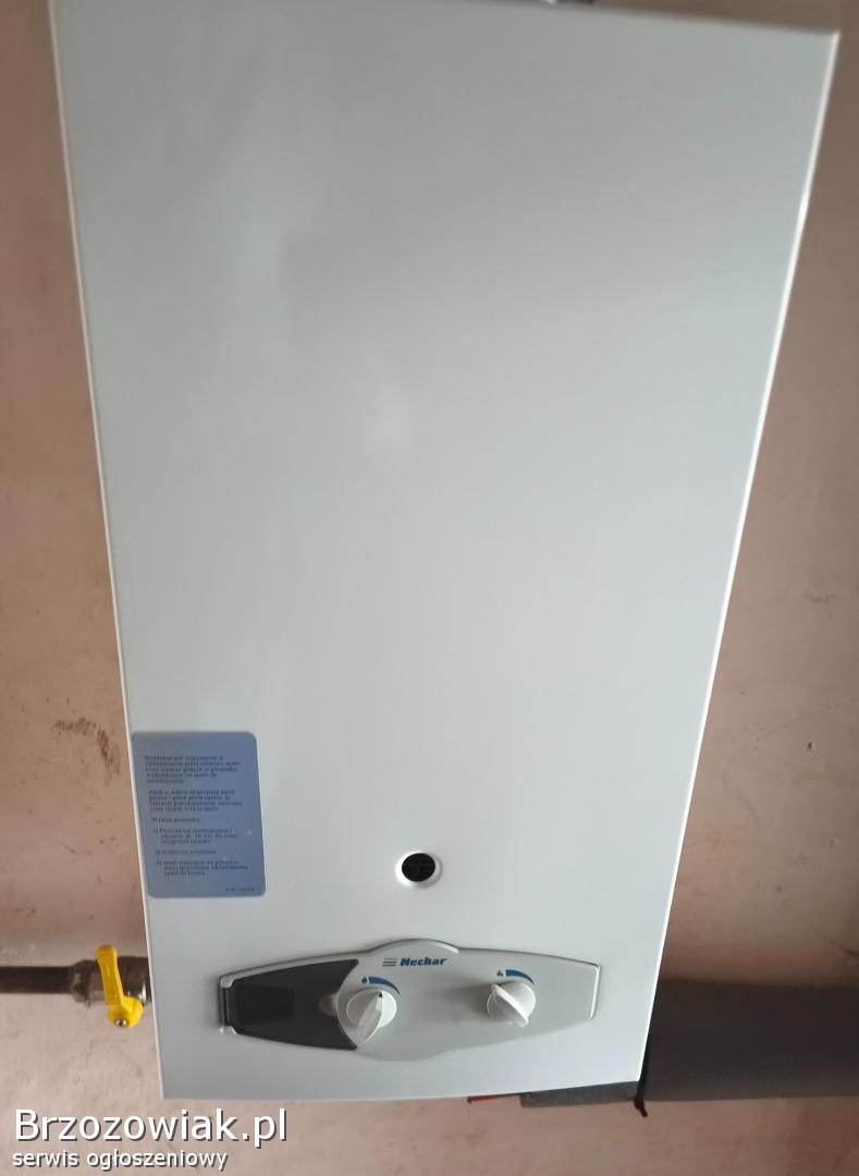 Gazowy, przepływowy podgrzewacz wody Nechar N19-E. Stan bardzo dobry.