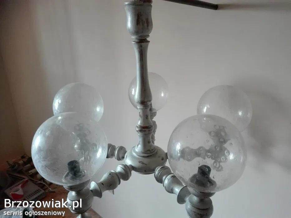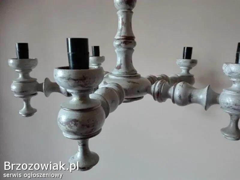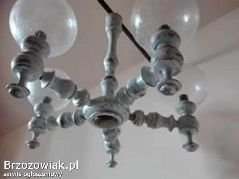 Na 5 żarówek. Lampa w pięknym stylu, malowana kremową farbą, potem przecierana.
