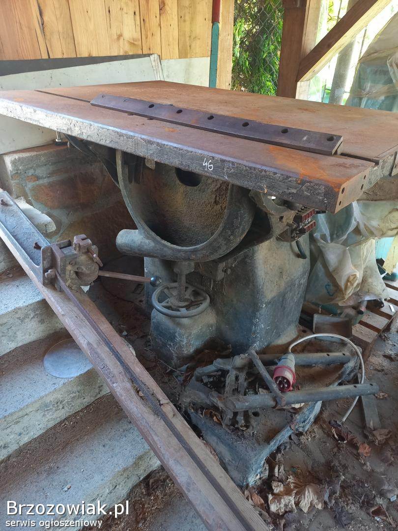 Stara polska piła Pleszew, odlew żeliwny, regulowana wysokość, uchylny stół. Sprawna.