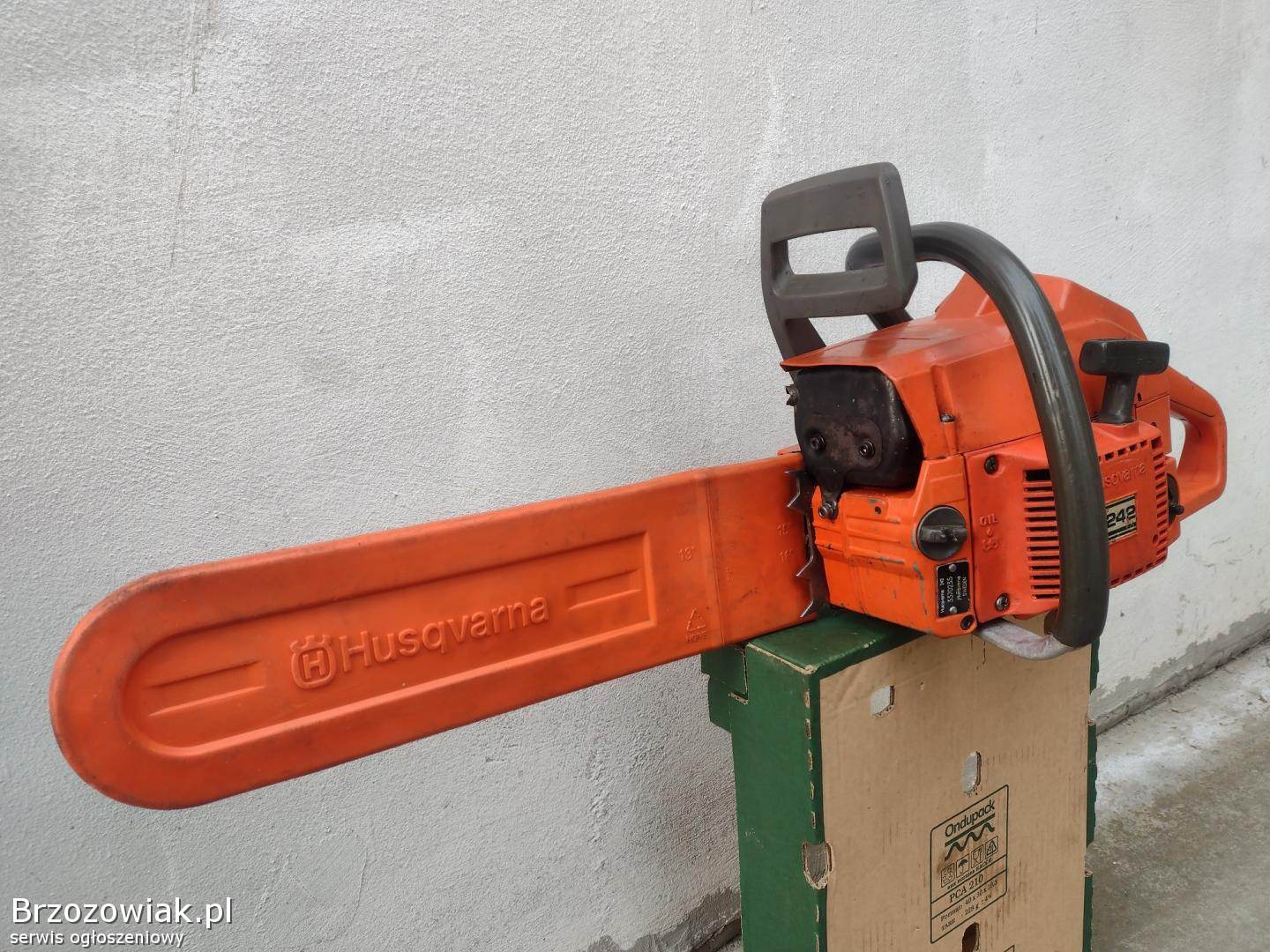 Piła spalinowa Husqvarna 242 stan bdb, oryginalna szwedzka, łatwo zapala za każdym razem, szybko reaguje na gaz, trzyma wolne obroty, smarowanie łańcucha, hamulec dzialają, po serwisie, zachowana w oryginale co do śrubki, przywieziona z Niemiec.