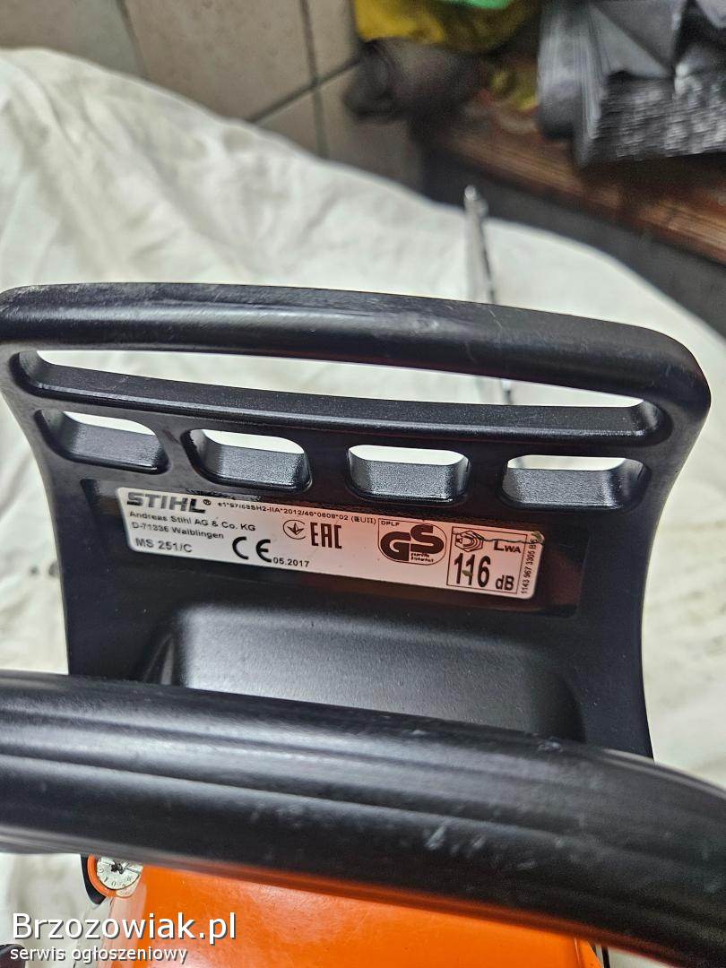 Sprzedam pilarke spalinowa Stihl Ms 251/C moc 3. 1km. Sprowadzona z Niemiec. Używana. Stan techniczny dobry. Pracuje ładnie na niskich i na wysokich obrotach, smarowanie, hamulec sprawny. Kompresja bdb. Rok 2017. Nowy łańcuch. Więcej informacji pod numerem 5. 3. 9. 7. 5. 1. 9. 8. 0