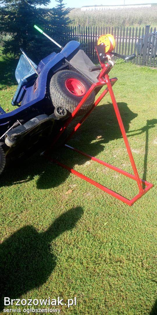 Sprzedam nowy robiony podnosnik przechyłowy do traktorka kosiarki z wyciągarką pasową ręczną, przydatny przy czyszczeniu kosiska lub ostrzenia noży