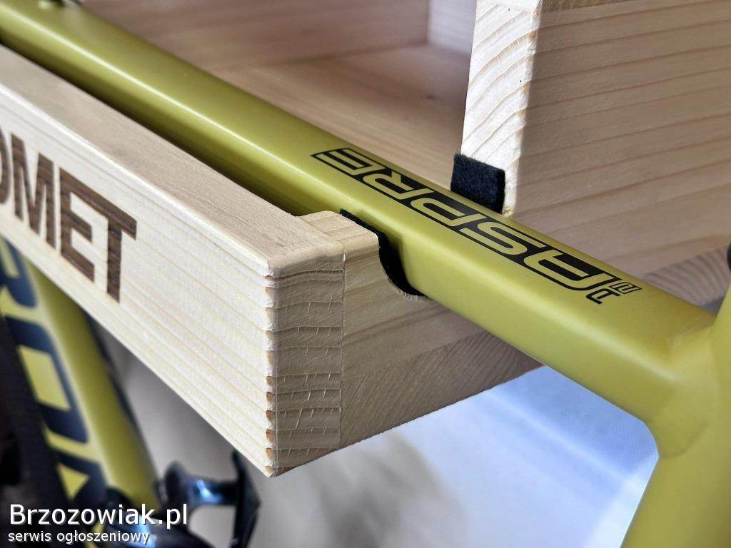 Elegancka i funkcjonalna półka rowerowa wisząca wykonana z wysokiej jakości litego drewna. Ta unikalna półka to idealne rozwiązanie dla rowerzystów, którzy cenią sobie estetykę i funkcjonalność w przechowywaniu rowerów.