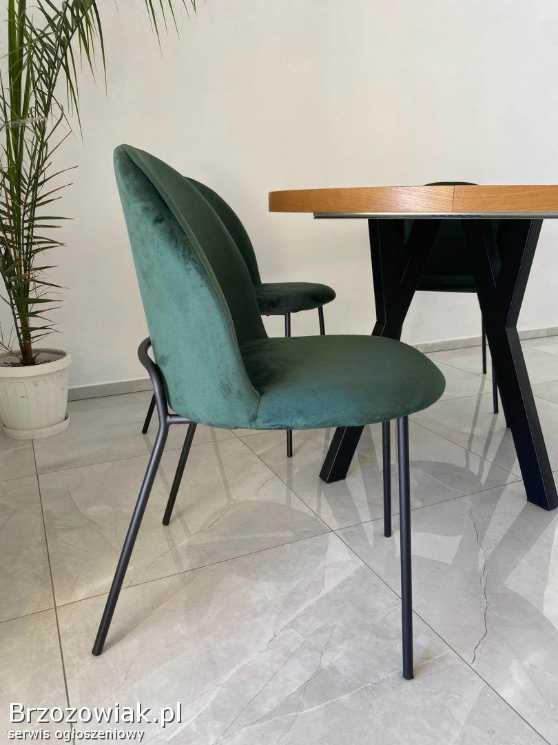Tapicerowane krzesło w kolorze butelkowej zieleni: