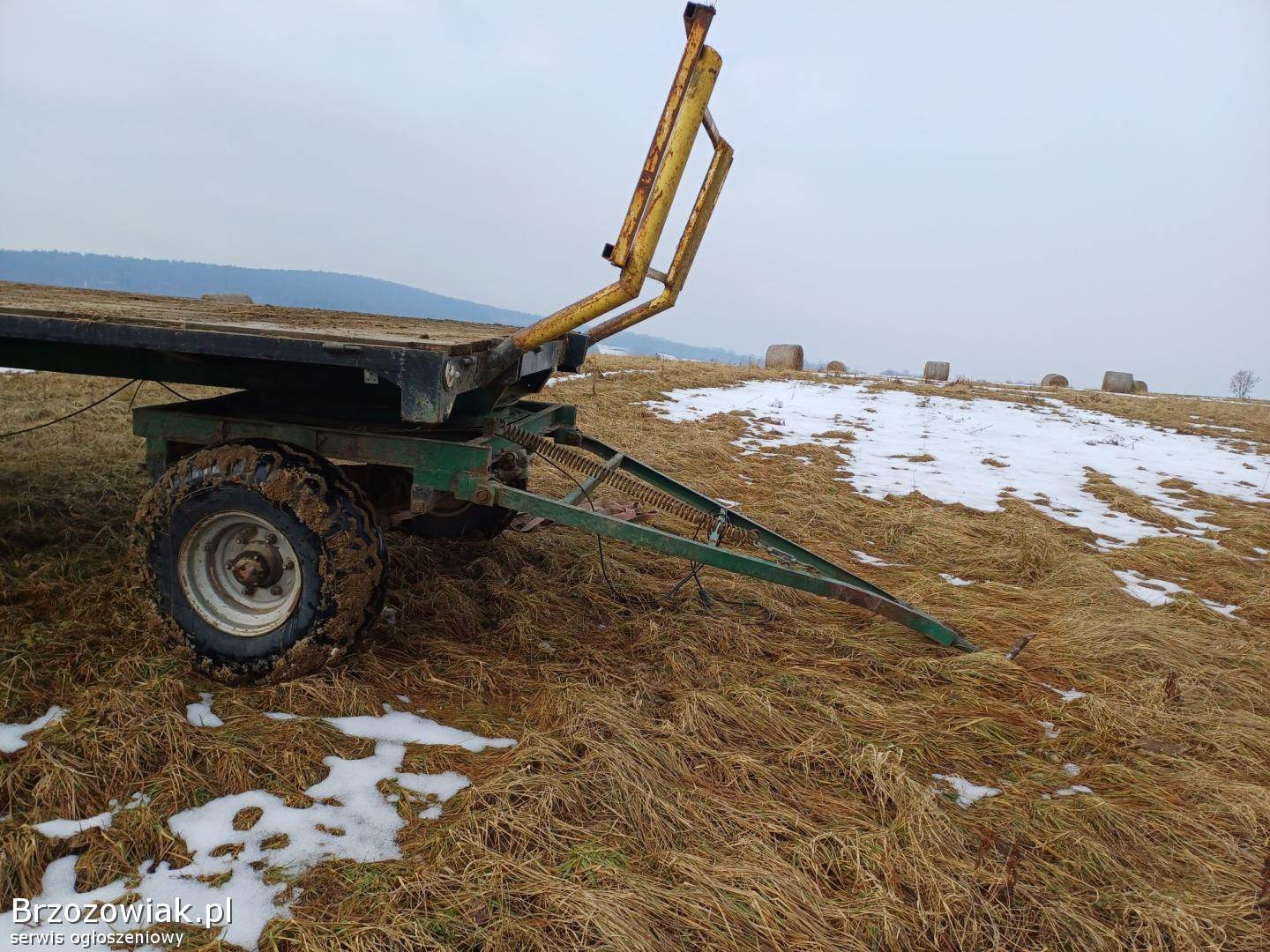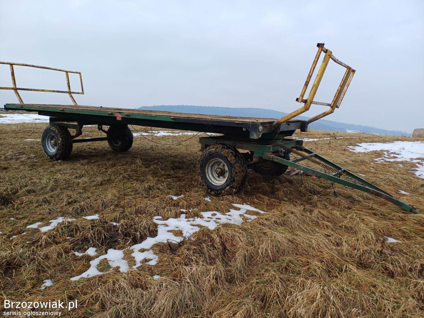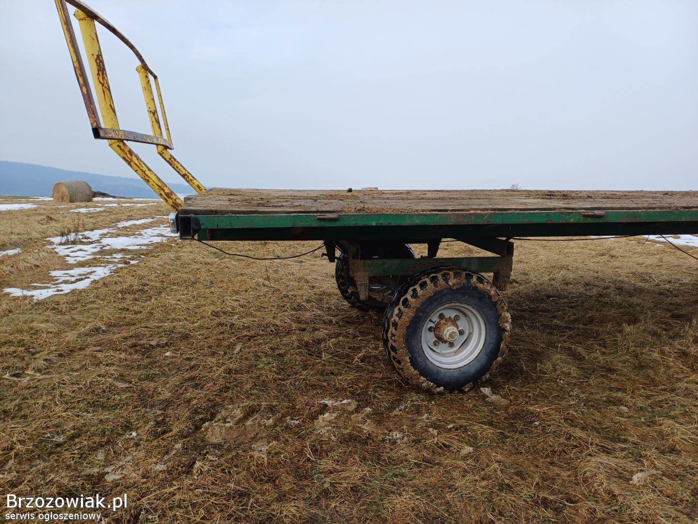 Sprzedam przyczepę stan dobry, cały czas w użytkowaniu - typu sam, do przewożenia bali siana. Długość platformy 6, 8 m szerokość 2, 5 m. Mieści się 12 bali na dole o wymiarach 120x120 i 10 na górze. Światła, przednia oś przygotowana do hamowania. Koła 11. 5/80-15. 3. Nierejestrowana.