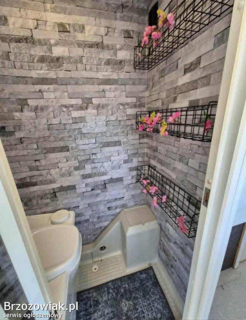 Czysta, sucha przyczepa z nowa toaleta, kaseta do toalety i przedsionkiem. Cena zimowa