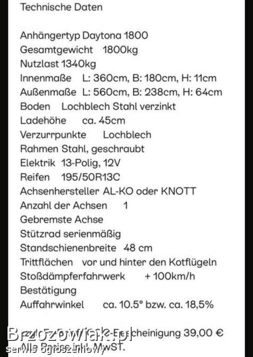 Do sprzedania przyczepka samochodowa, laweta z Niemiec, DMC 1800 kg.