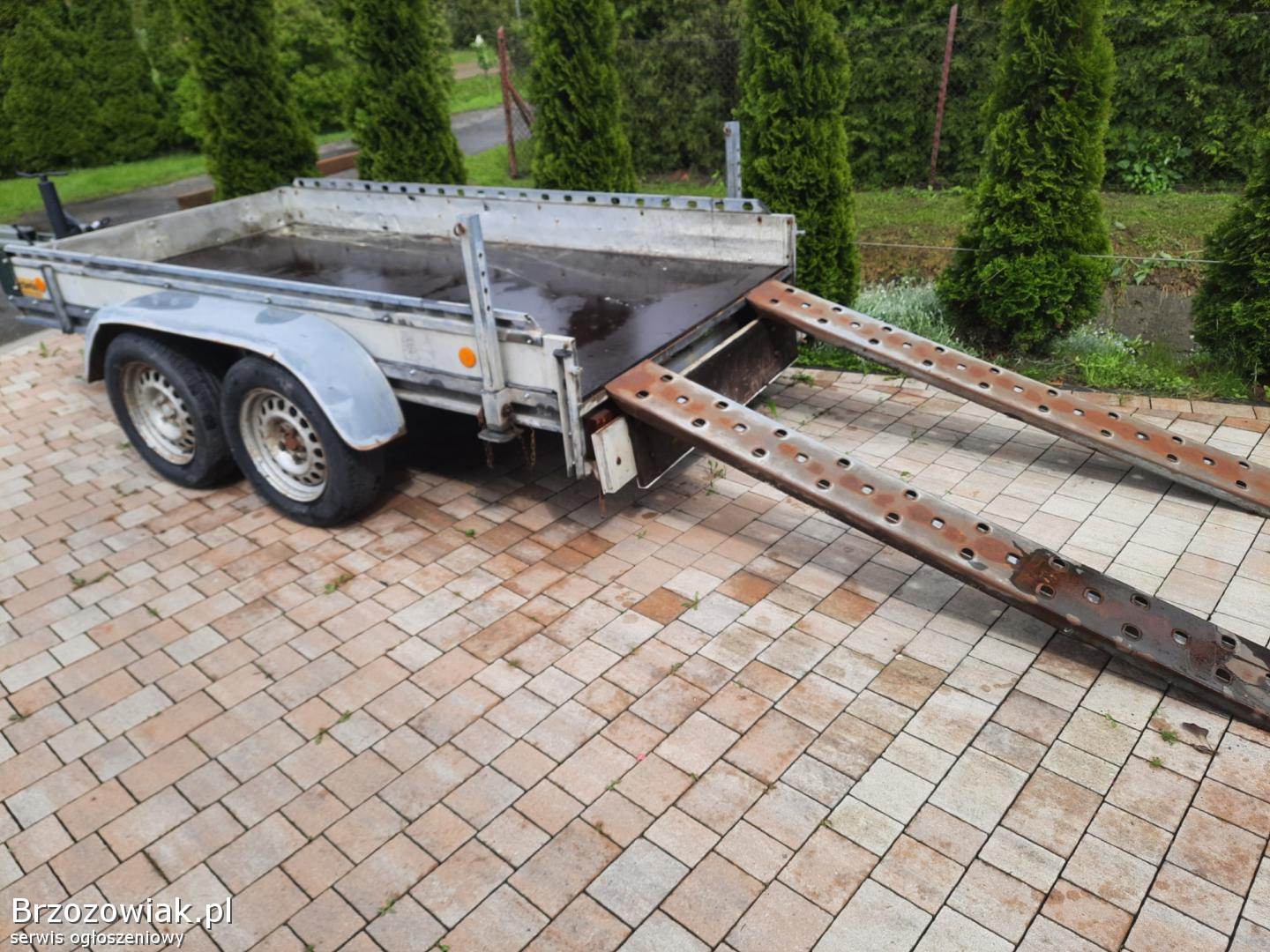 Do sprzedania ocynkowana oryginalna przyczepa pod koparkę z najazdami o wymiarach 160x310 z dyszlem 5. 40.