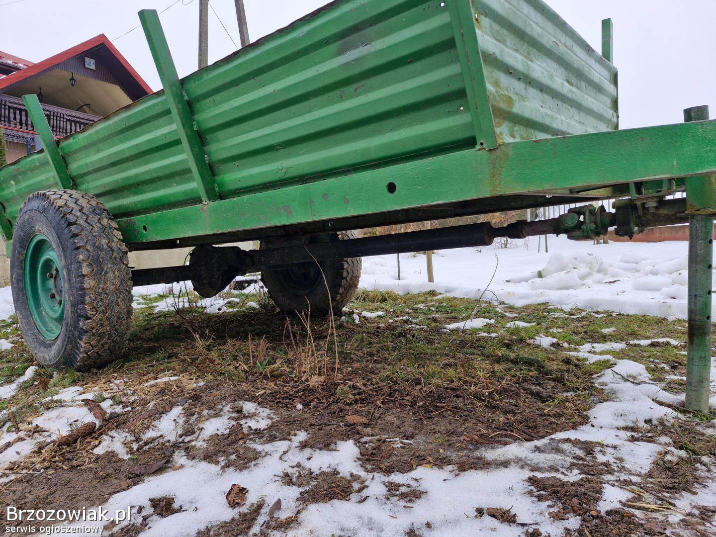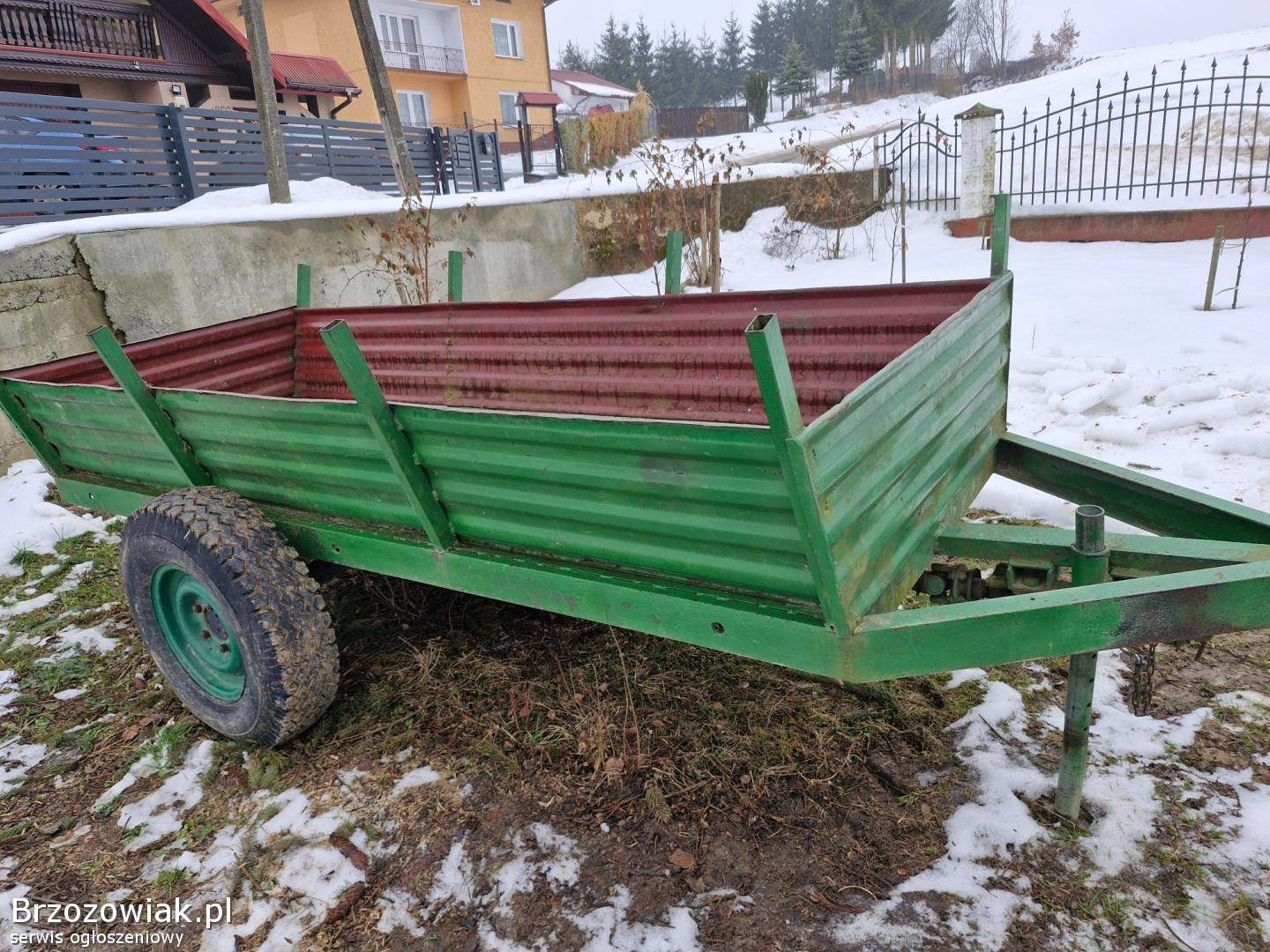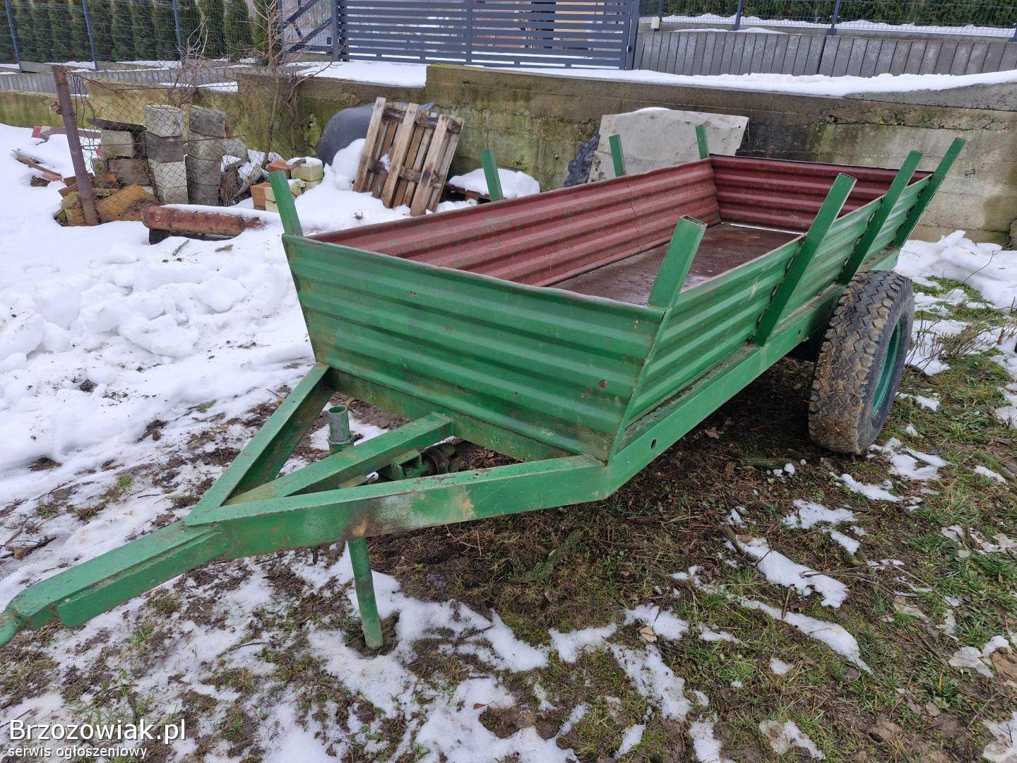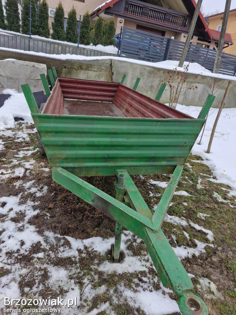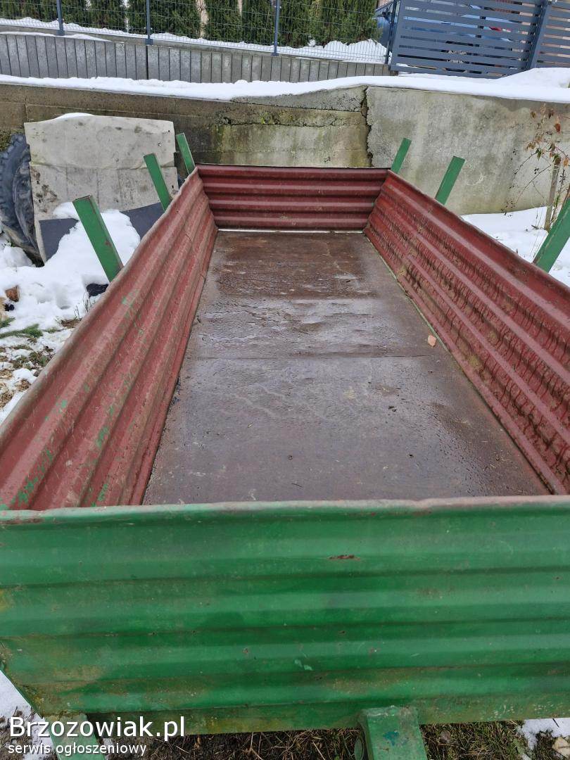 BrzozówDo sprzedania dwukołówka Długa 3, 15m. szeroka spod 1, 25m. szeroka u góry 1, 4m. Burta wys. 40cm. Oś z kołami szeroka 1, 75m Rama 100-tka. Koła wysokość 0,