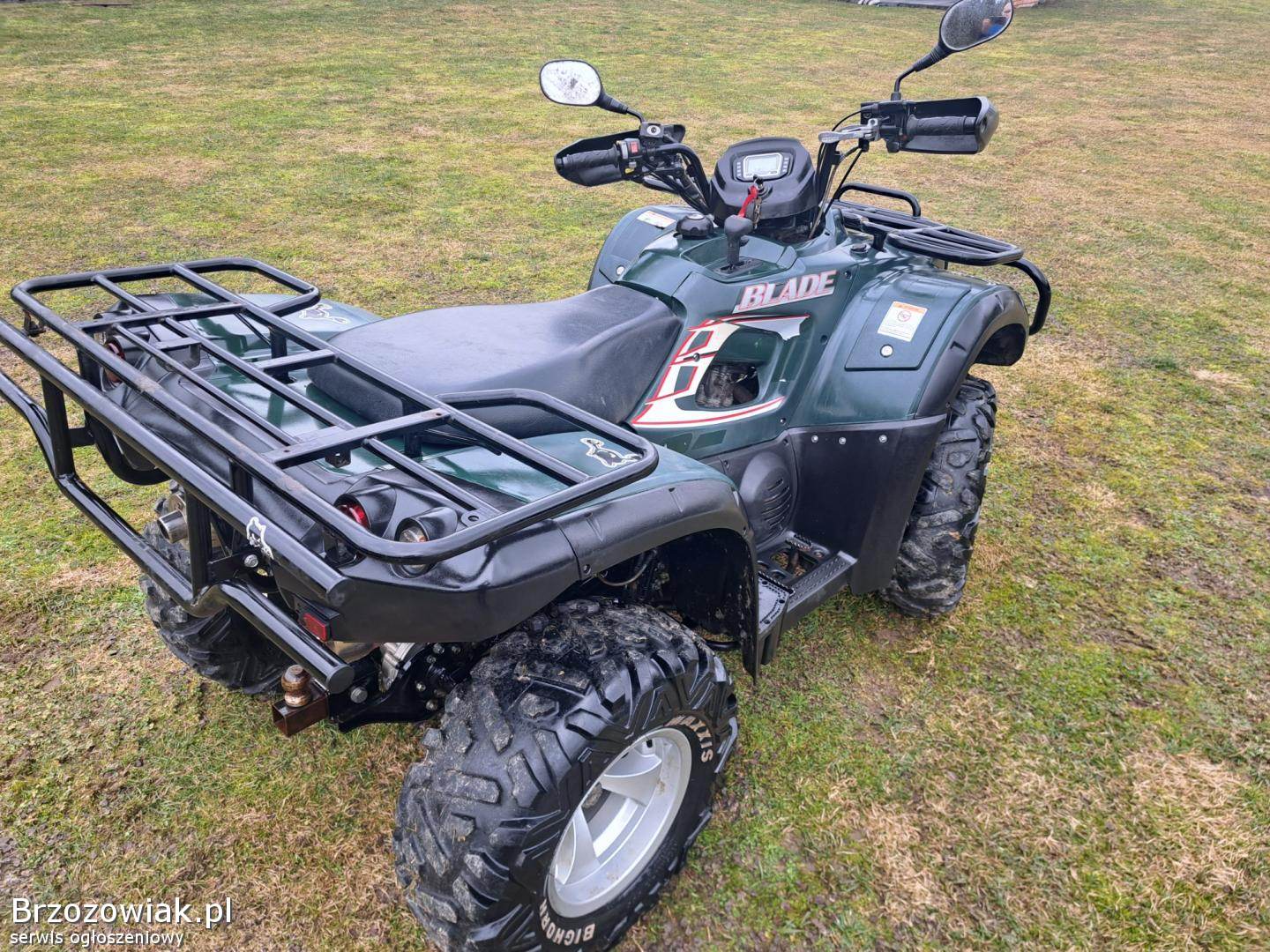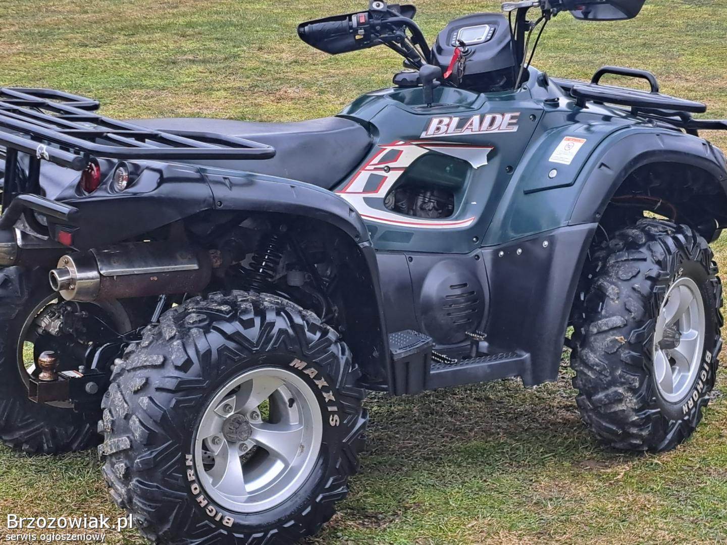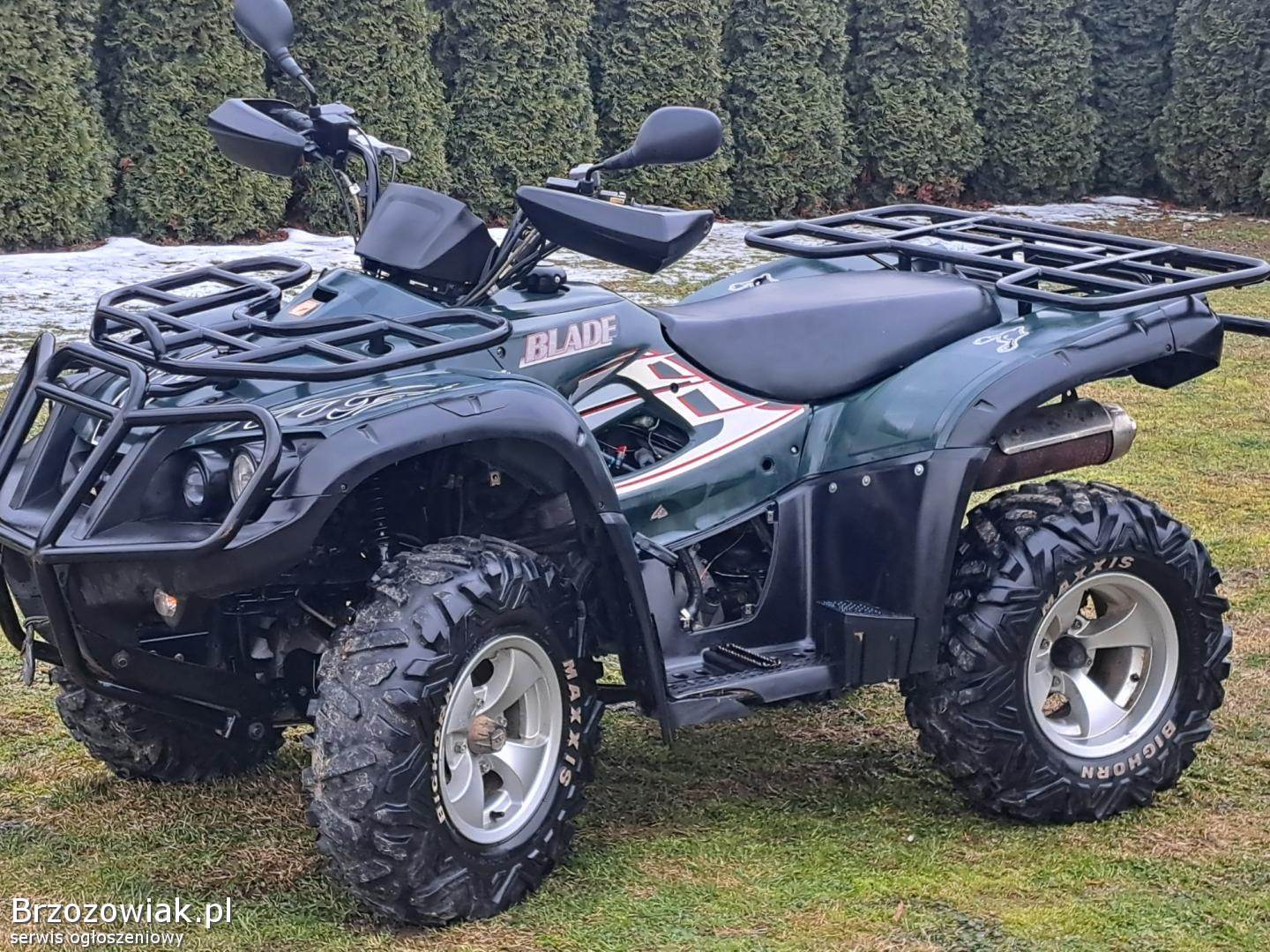 Sprzedam quada marki TGB BLADE o pojemnosci silnika 425 cc, quad posiada automatyczną skrzynię biegów z biegiem wstecznym ( L-H-N-R ), Quad posiada ramę XXL cała w oryginale, koła 12 cali Bardzo Ładne aluminiowe felgi, hamulce sprawne, elektryka sprawna, wyciagarka ( sprawna), zaczep kulowy oraz gniazdo do podpięcia przyczepki, napęd 2x4 4x4 ( zapinany manualnie).