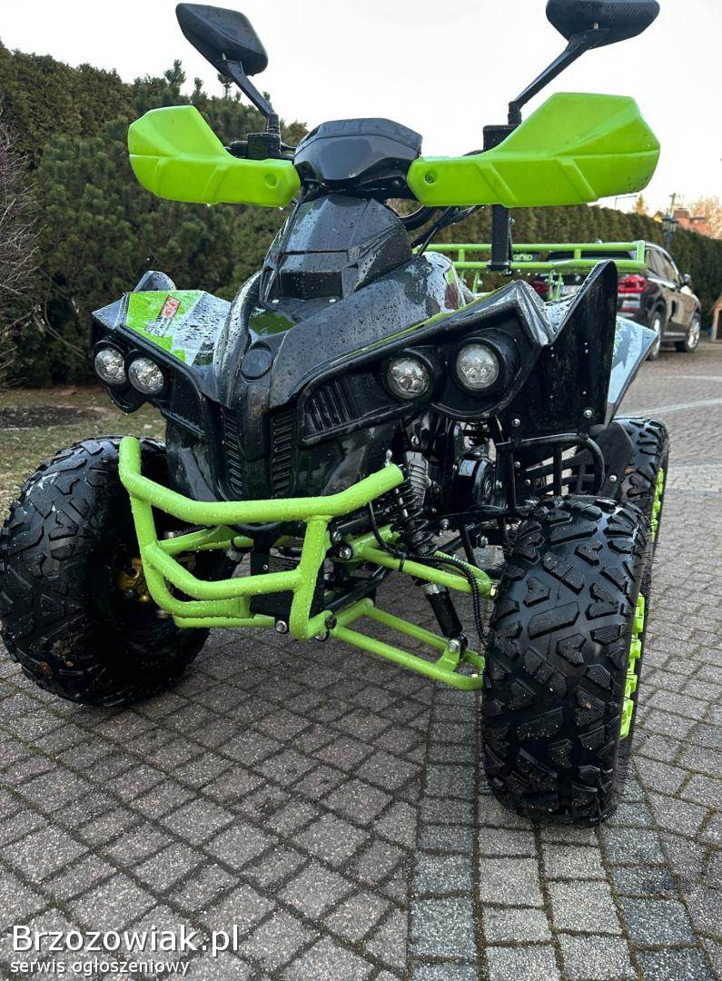 Zresztą to widać po stanie w jakim on jest. Automatyczna skrzynia biegów 3+1. Ekranik z licznikiem. Olej wymieniony niedawno. Była wymieniana dętka i kołpak opony bo pękł kiedys. Akumulator jest padnięty aktualnie po zimie, ale quad napewno odpala. Ogólnie było dbane. Nie jest połamany żaden plastik, quad nigdy nie leżał.