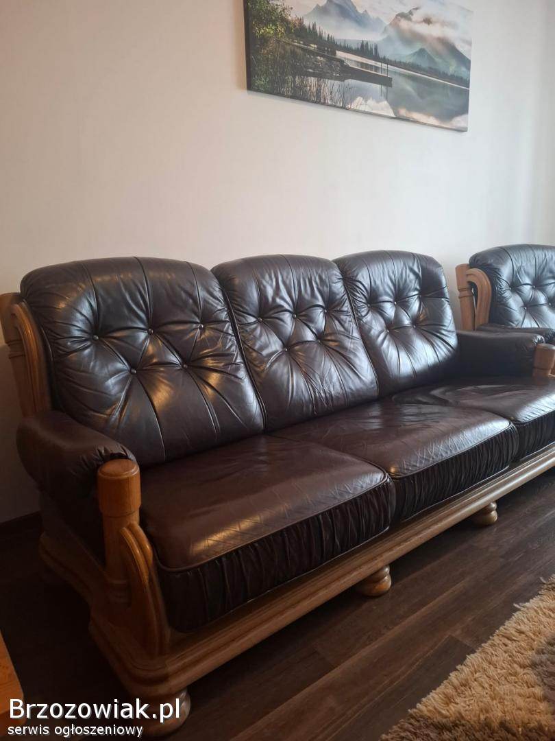 Wygodna 6ścio osobowa, skórzana kanapa w ciemnobrązowym kolorze. Mebel ma solidną drewnianą konstrukcję i posiada wygodne, pikowane siedzisko. Kanapa jest w stanie używanym, ale nadal w dobrym stanie. Doskonały wybór do salonu lub pokoju wypoczynkowego. Odbiór osobisty.