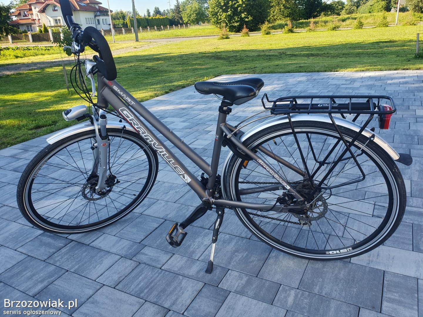 Sprzedam rower Gran Ville przywieziony z Belgii. Stan bardzo dobry, aluminiowa rama, amortyzator, hamulce tarczowe.