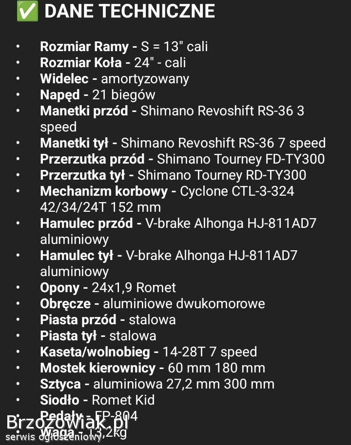 ogłoszenia ) sprzęt sportowy ) sprzedam ) Rower Romet Lambler MTB 24, shimano, jak nowy.