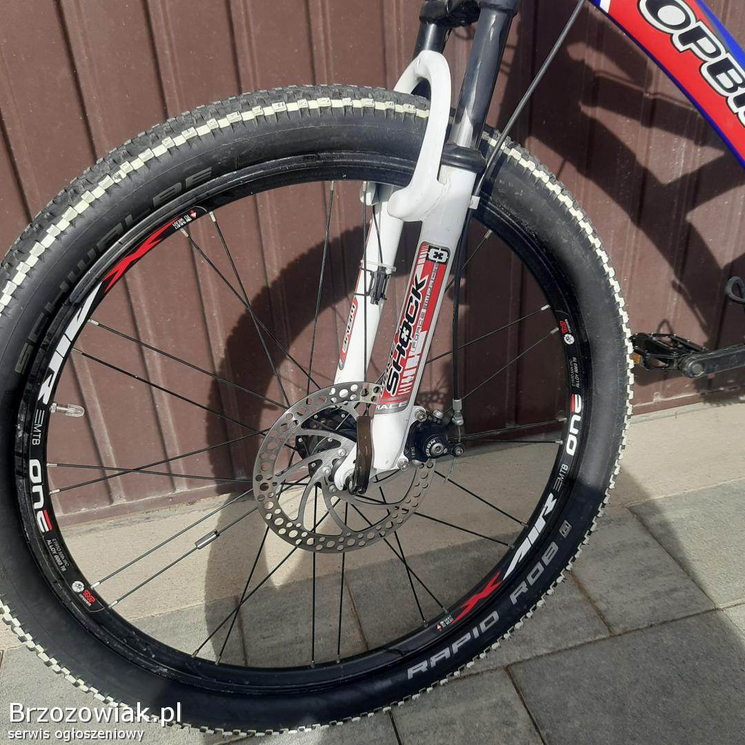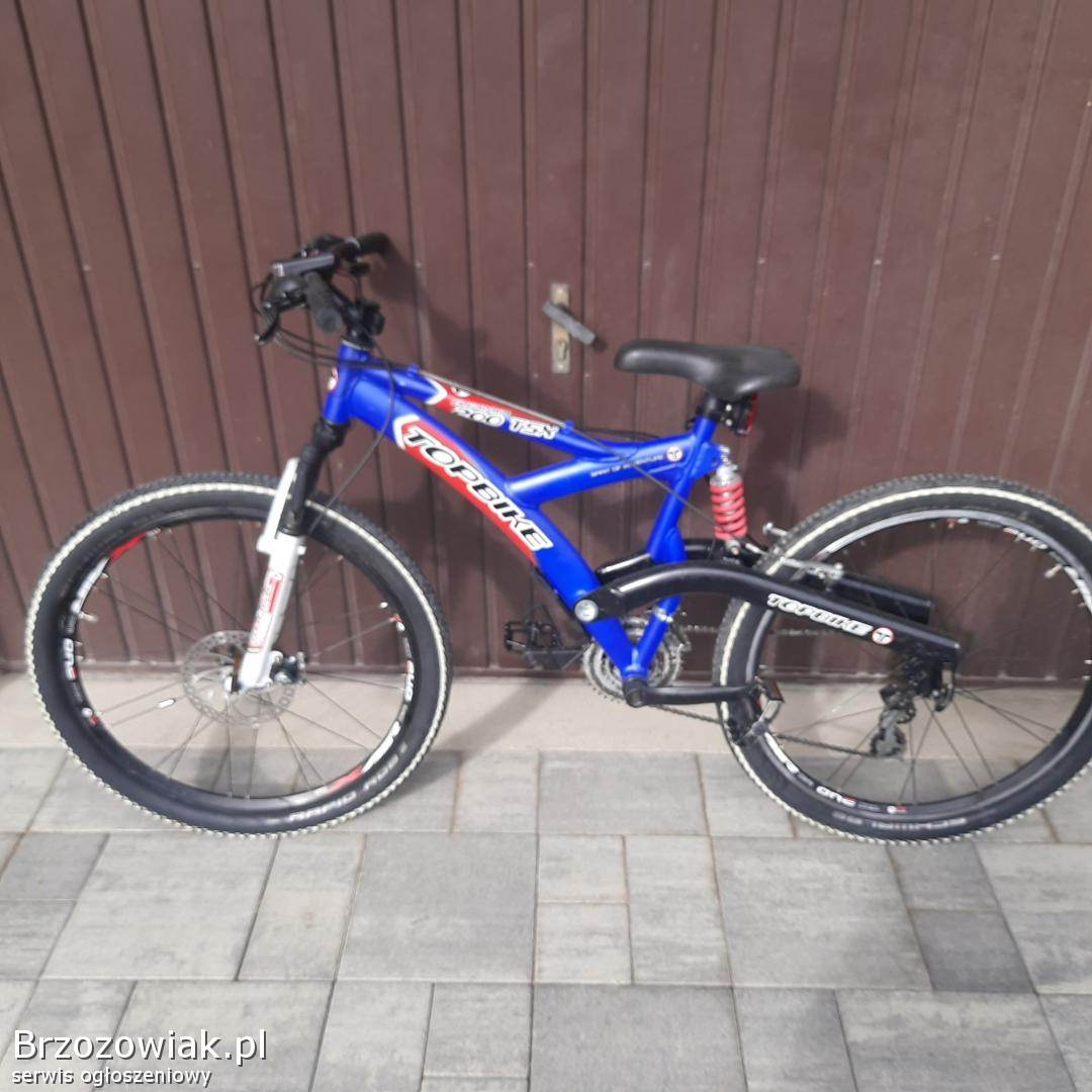 Sprzedam rower TOP BIKE na kołach 26. Posiada hamulce tarczowe przód, amortyzatory przód i tył nowe opony i wymienione pedały. Przerzutki shimano. Rower świeżo po serwisie. Normalne ślady użytkowania. Polecam
