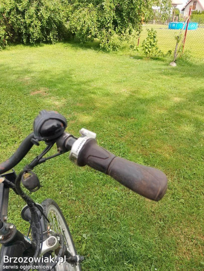 Sprzedam rower elektryczny marki Prophete. Silnik. sprawny bateria Samsung24v z ładowarką, trzyma napiecie. Siedem biegów w piascie SRAM7, uszkodzona manetka zmiany biegów. Sprzedaje jako uszkodzony więcej info na tele, cena 690 do negocjacji