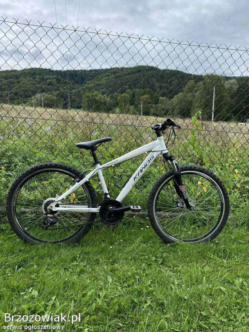 Sprzedam rower kands staneger w dobrym stanie po generalnym czyszczeniiu napędu i całego roweru pomalowana została kierownica i różne elementy rama ma lekkie zadrapania lecz nie widać tego ma białym kolorze moge dorzucić dwie opony 26 cali