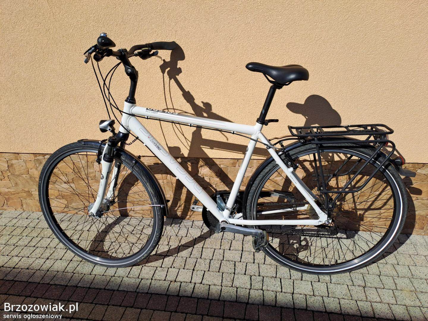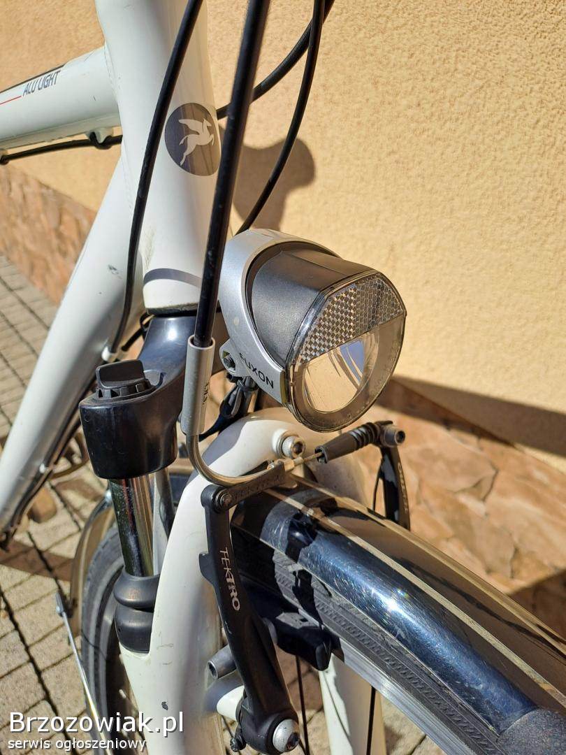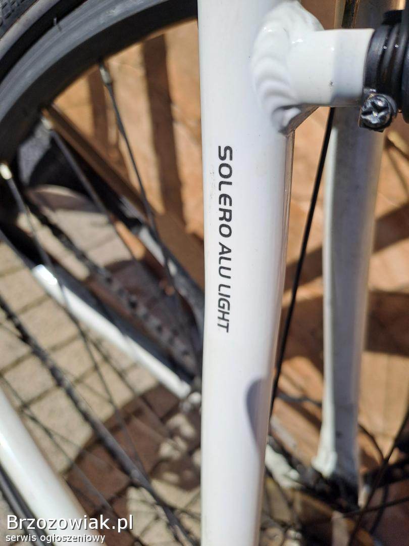 Sprzedam rower trekkingowy Pegasus Solero Alu Light. Rower posiada aluminiową ramę, 3 biegi na przedniej zębatce oraz 8 biegów na tylnej, przekładnia Shimano Deore, koła w rozmiarze 28 cali, opony Schwalbe, hamulce Tektro, widelec SR Suntour, dynamo w przedniej piaście.