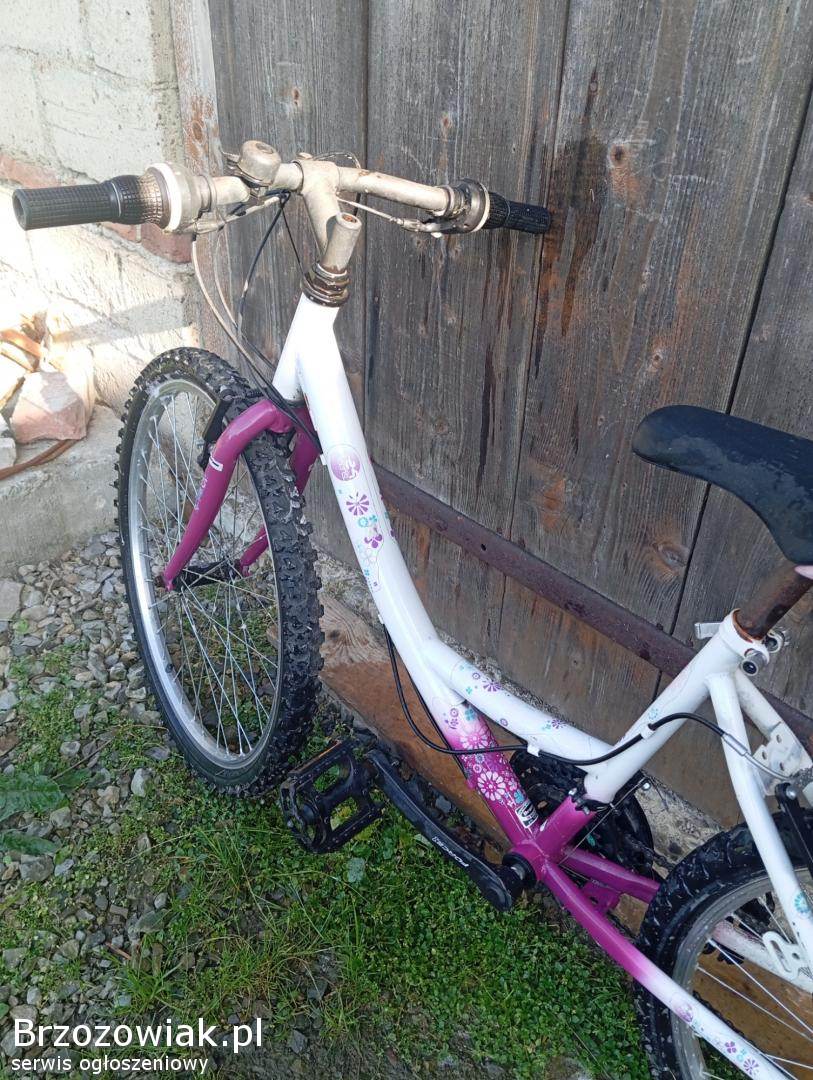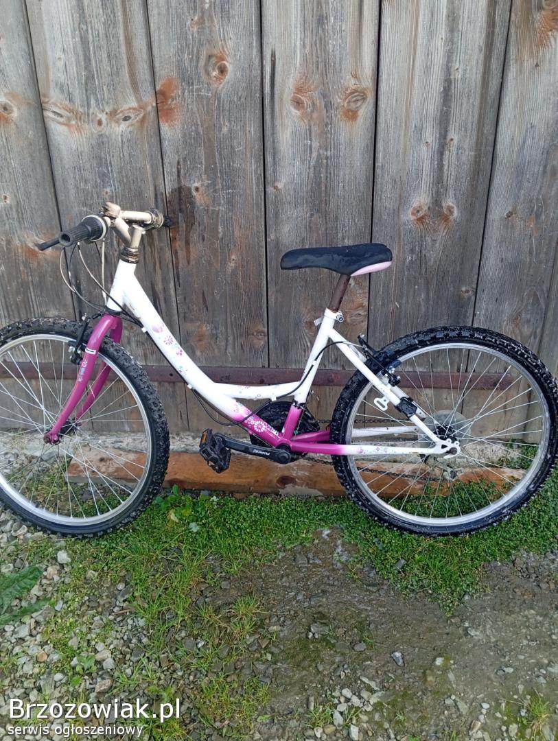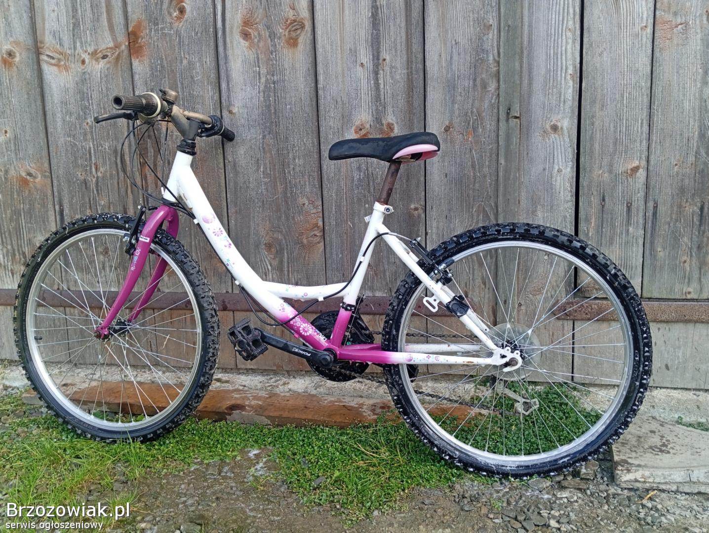 Rowerek dla dziewczynki górski, różowy z kwiatkami. Rowerek ma 24 cale koła.