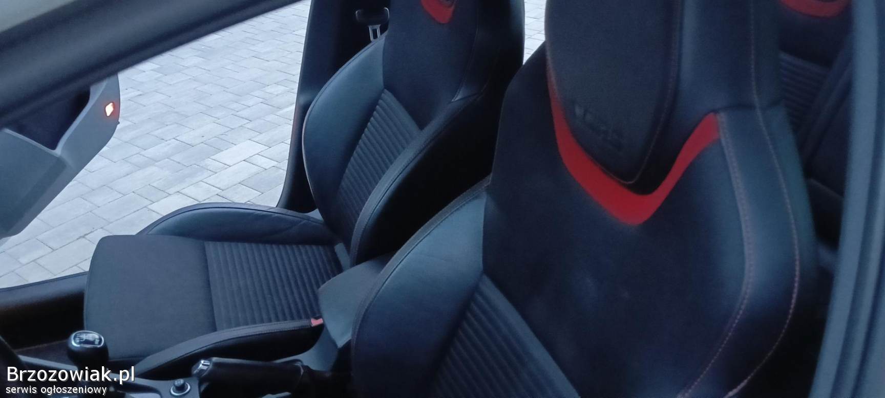 x sportowe kubełkowe czarne fotele grzane z dodatkami CZERWIENI półskóra przeszywana czerwoną nicią, mega wygodne
