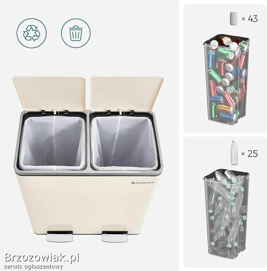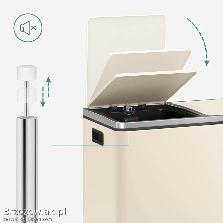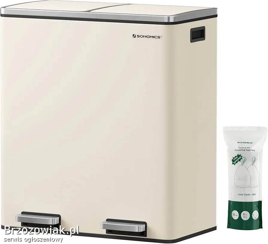 SONGMICS 2 x 30 litre bin with 15 trash bags, metal pedals, 2 plastic buckets, lid, handles, soft closure, airtight, cream LTB060A01