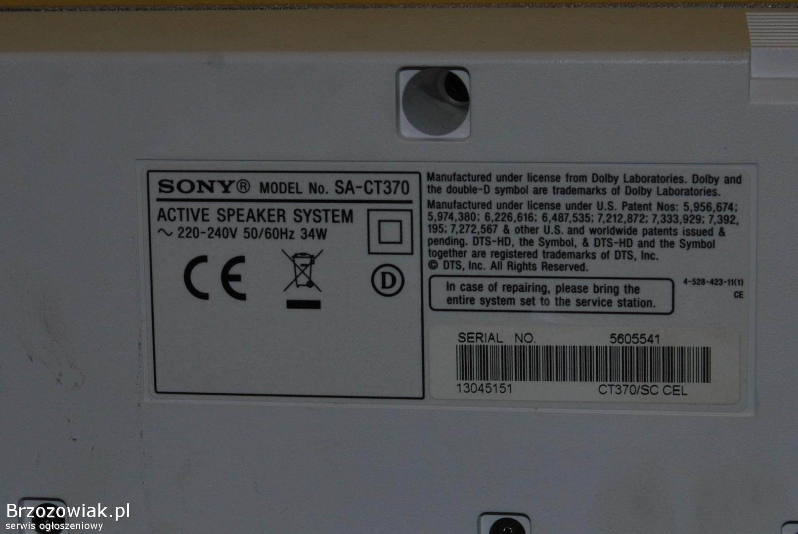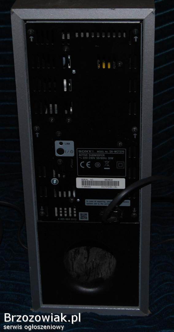 Soundbar marki Sony model SA-CT370/ SA-WCT370, używany. Doskonałe rozwiązanie do ulepszenia dźwięku telewizora. Ten soundbar zapewnia wyjątkową jakość dźwięku i doskonałą wydajność. Idealny do oglądania filmów, słuchania muzyki i grania w gry. Prosty w instalacji i obsłudze.