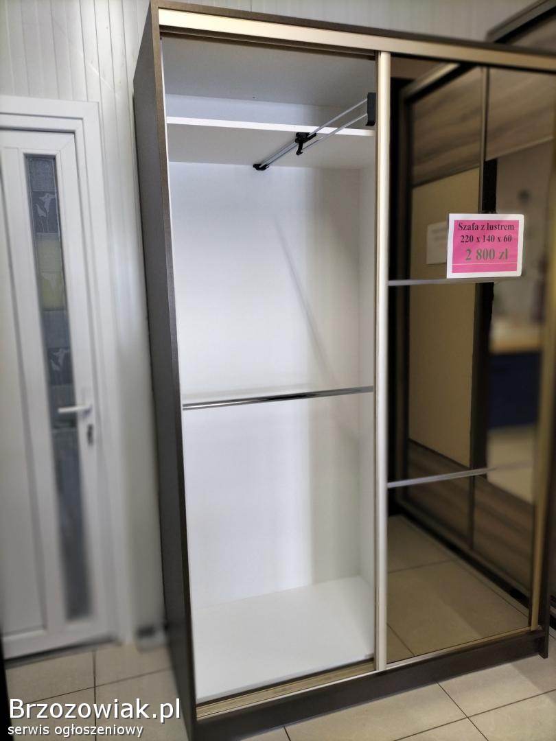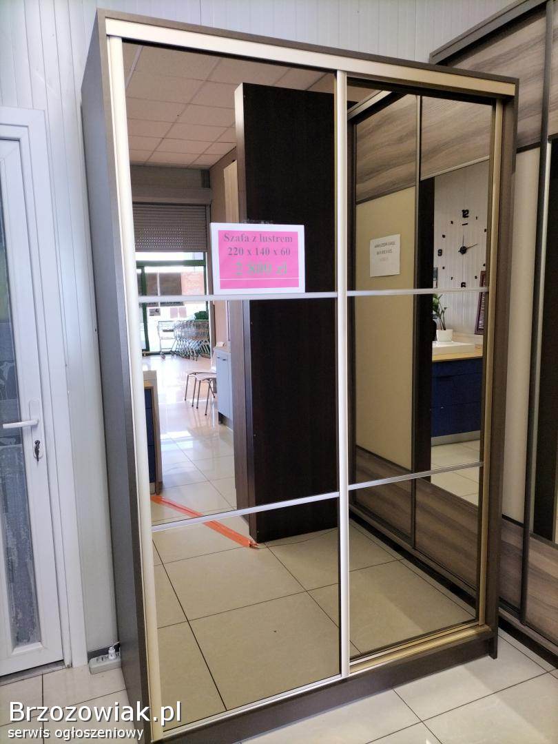 Szafa przesuwna o wymiarach 220 x 140 x 60. Piękne brązowe lustra połączone z okuciami w matowym złocie. Wewnątrz biała zewnętrznie brązowo złota. Na pewno będzie zdobiła każde wnętrze. Szafa powystawowa. Możliwość obejrzenia w salonie meblowym Meblofront w Brzozowie ul. Bema 12 obok Pepco. Zapraszamy do obejrzenia.