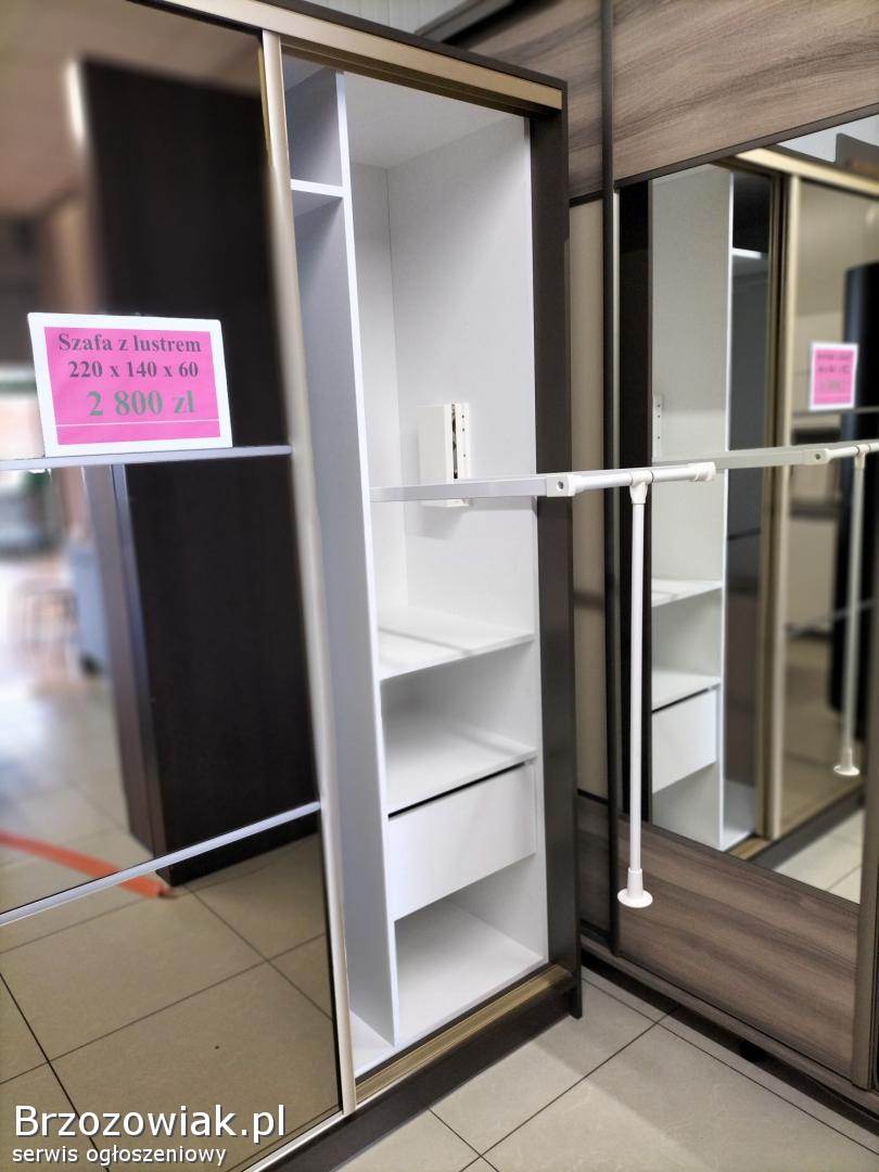 BrzozówSzafa przesuwna, drzwi szafy wykonane z lacobelu i lustra. Wyposażona w pantograf oraz kosze na ubrania. Wymiary 200 cm x 253 cm. Szafa powystawowa. Cena 3 3