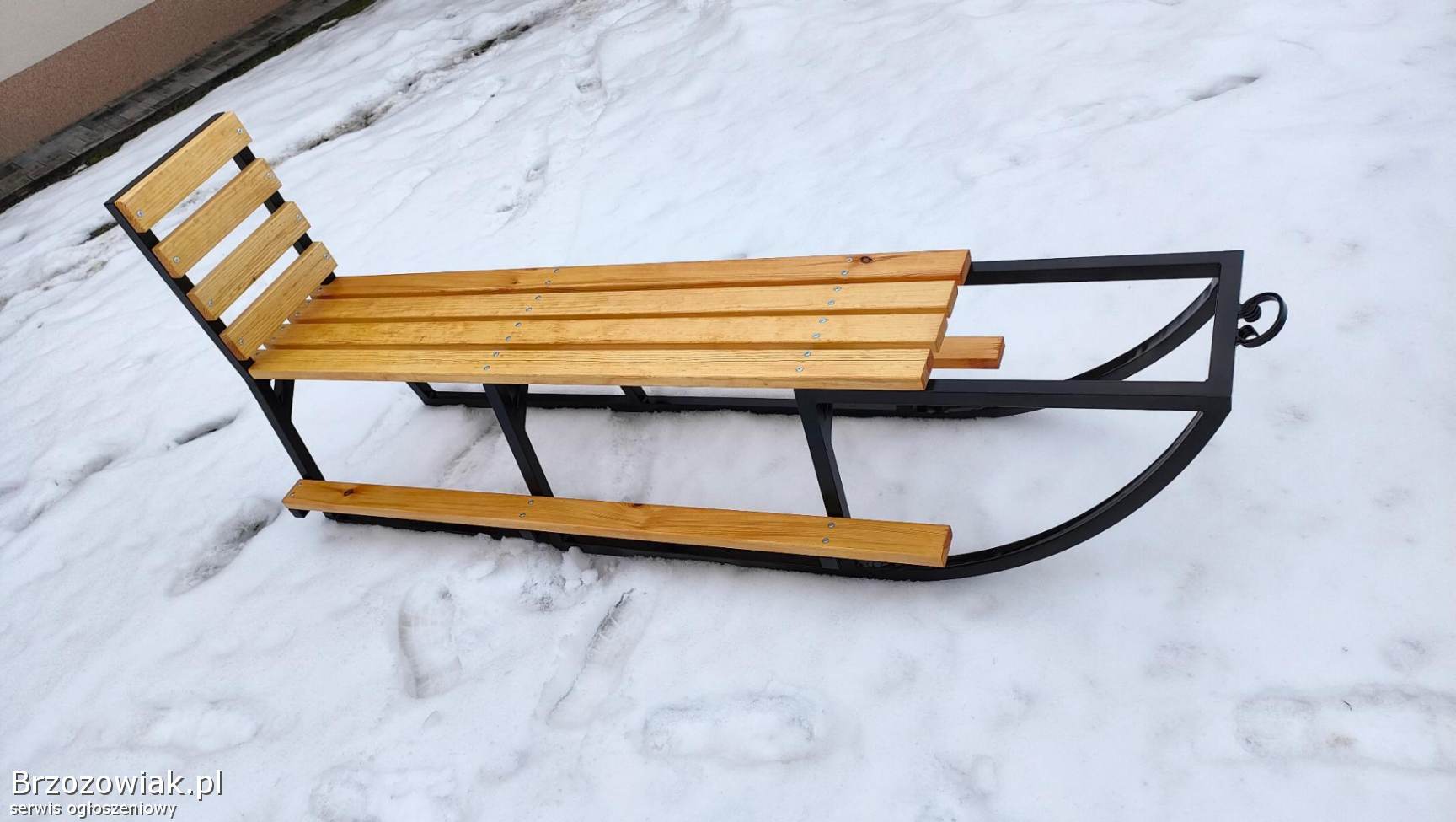 Sanki wykonane są z profila 30x30 z wzmocnieniami, pomalowane farbą podkładową i nawierzchniową. Elementy drewniane pomalowane dwa razy farbą odporną na warunki pogodowe.