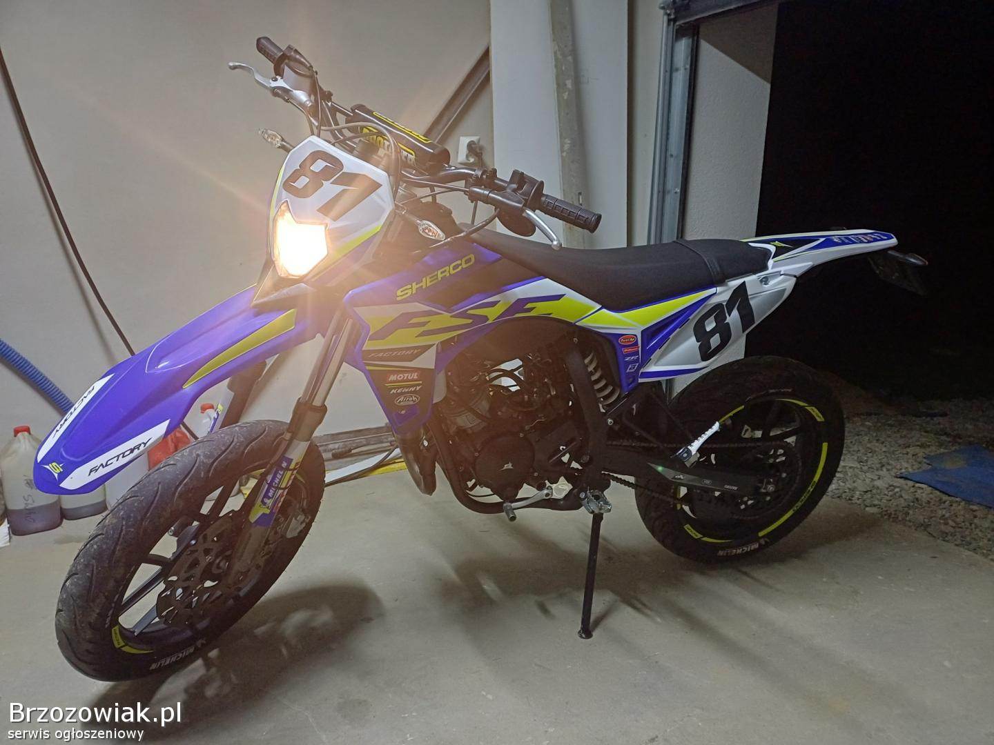 Aktualnie sherco wyposażone w akcesoryjne lusterka ale w zestawie dorzucam oryginalne, 2 kluczyki do blokady kierownicy, stary wydech(odblokowany)nowy filtr powietrza oraz stare części.