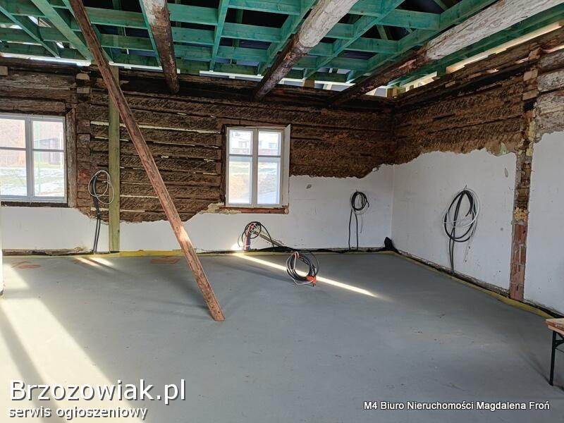Na 95 arowej niezwykle widokowej działce znajduje się ok 100 m dom, drewniany z rozpoczętym gruntownym remontem. Prace remontowe dotychczas wykonane obejmuję całkowitą wymianę dachu na nowy, dolanie i wzmocnienie fundamentów, nowa instalacja elektryczna i hydrauliczna, odwodnienie i izolacja fundamentów, nowe wylewki, ścianki działowe, bale drewniane odrobaczone i odpowiednio zaimpregnowane, nowe przyłącze gazu i prądu.