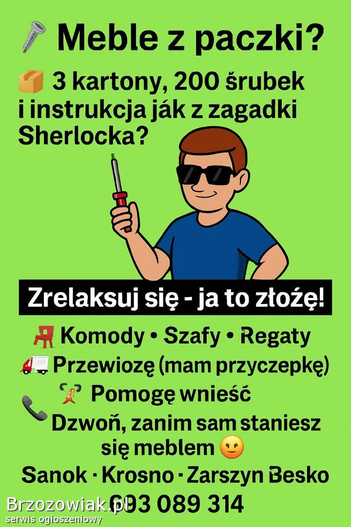 Skręcę i rozkręcę meble, przewiozę przyczepką, oraz pomogę wnieść wszystko na miejsce.